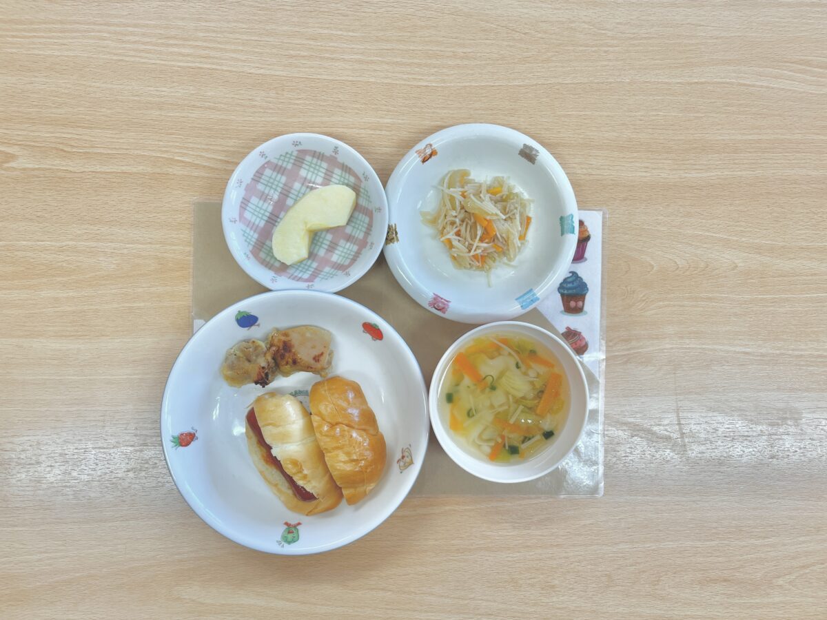 今日はウィンナーサンドでした☆ふんわりとしたバターロールとウィンナーの相性が抜群です♬タンドリーチキンはカレー風味で、子ども達にも大人気でした♡