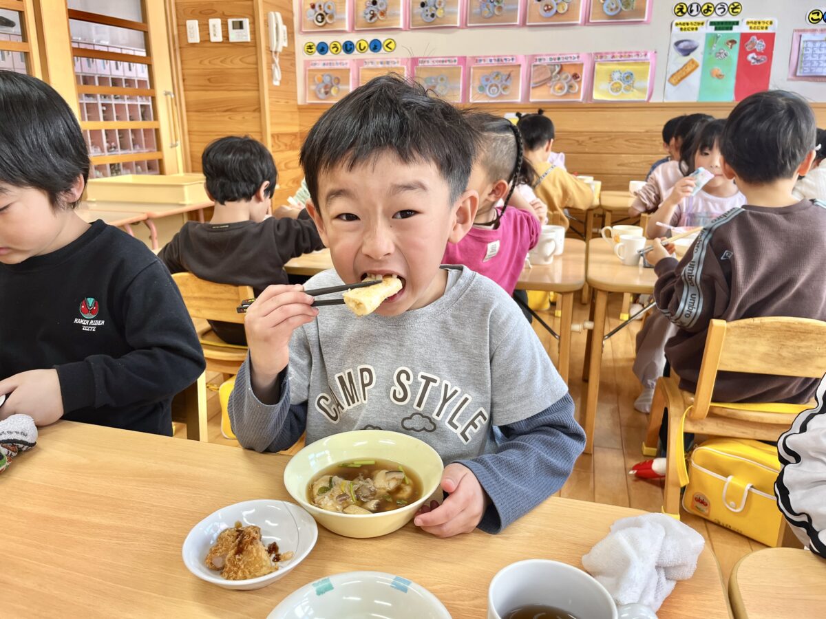 何の音?2026年3月16日トントントン… ガーガーガー… トントントン… 朝のおやつを食べていると、色々な音が給食室から聞こえてきました。 「何の音かな?」と振り向いてじっくり観察すると、給食の先生の手元には、大量のたまねぎが…! 「トントントン […]