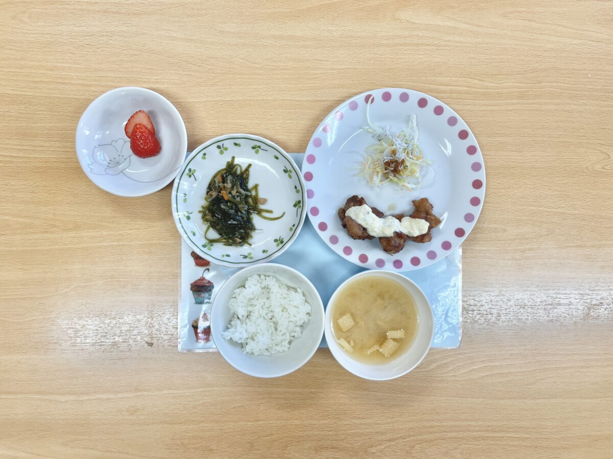 今日は鶏の照り焼き丼でした☆ふんわりと柔らかく焼き上がっており、ご飯が進む甘じょっぱい味付けです♪ひじきサラダはマヨネーズでまろやかに仕上げ、カルシウム豊富で栄養満点です♡