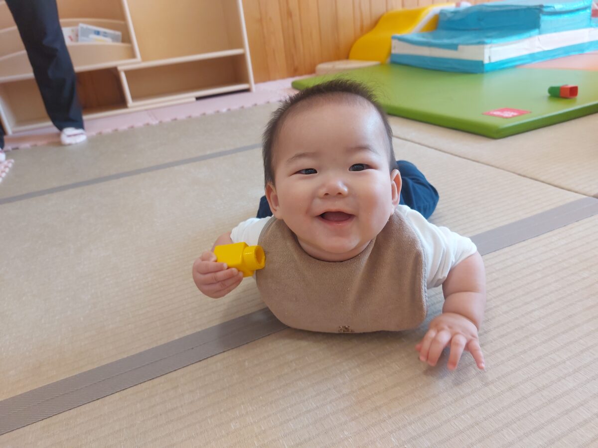 保育士と目が合うと見せてくれるとびっきりの笑顔にいつも癒されています!