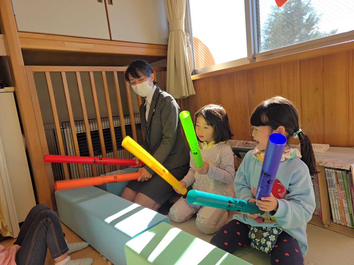 ドレミパイプに挑戦したお友達は、「ママが来る前にできるようになろうよ!!」と一生懸命に練習♬ママが遊びに来てくれると、早速披露していました☆ママと一緒にドレミパイプに挑戦するお友達も「難しいね」「楽しいね」など苦戦しながらもとっても上手に演奏していました♬