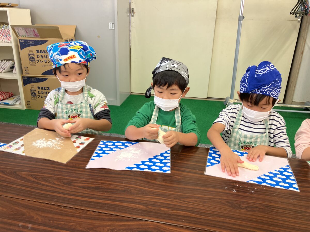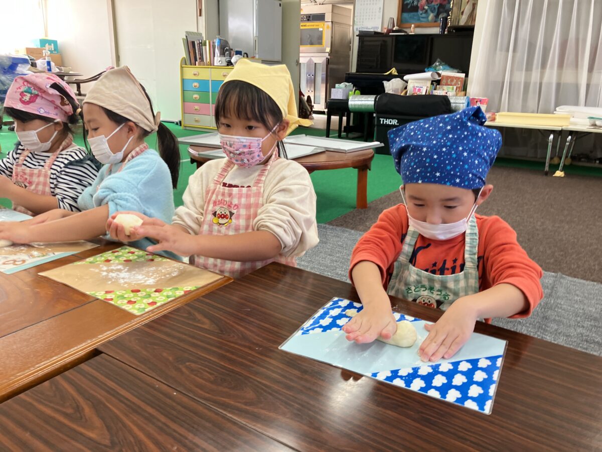 今回は好きな形のパンを2つ作ることができ、トンボやリボン、ハロウィンのかぼちゃや家族の顔など思い思いに作って楽しみました♬