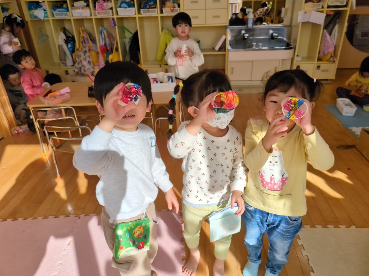 紙コップを使って、カラフル望遠鏡を作ったお友達。