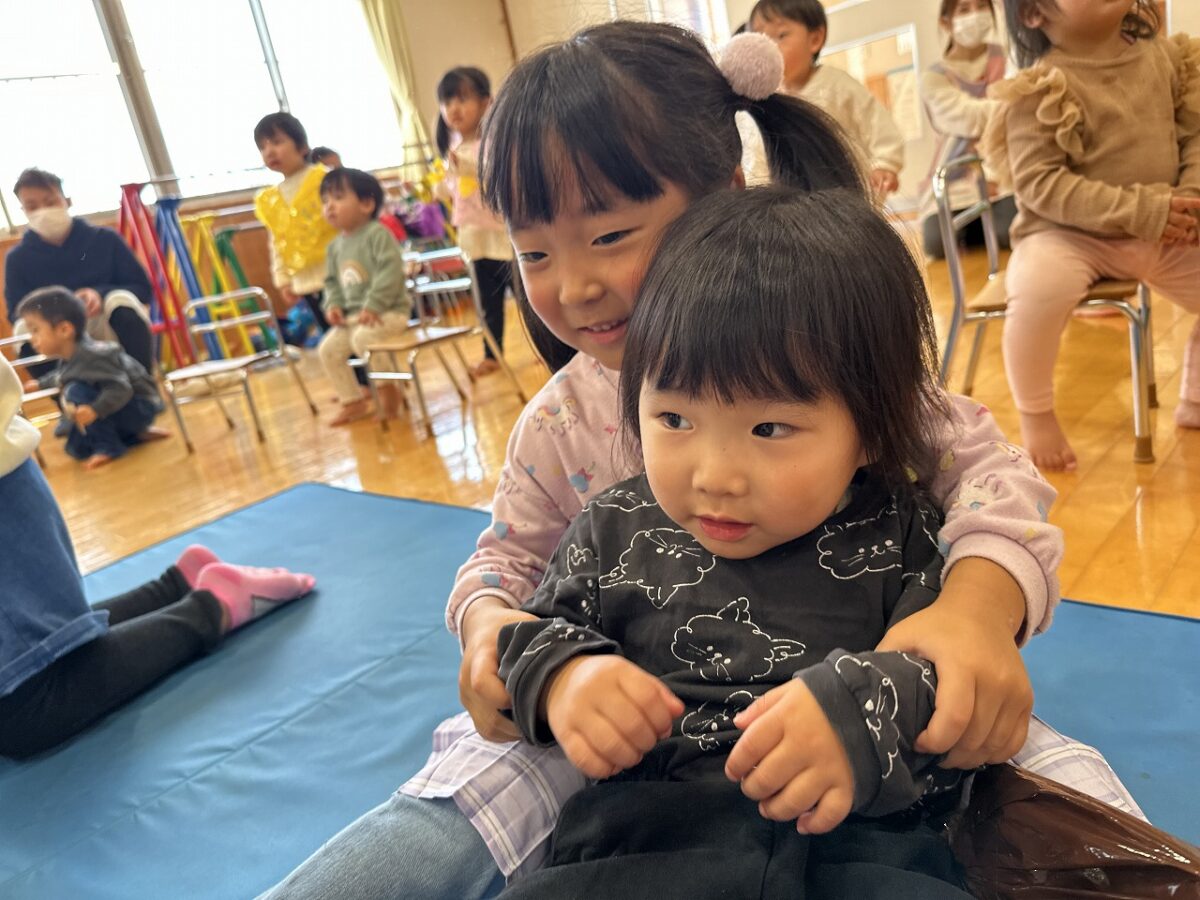 明日は、未満児さんの発表会!触れ合い遊びのコーナーで、ママになりきって一緒に楽しみました😊♫