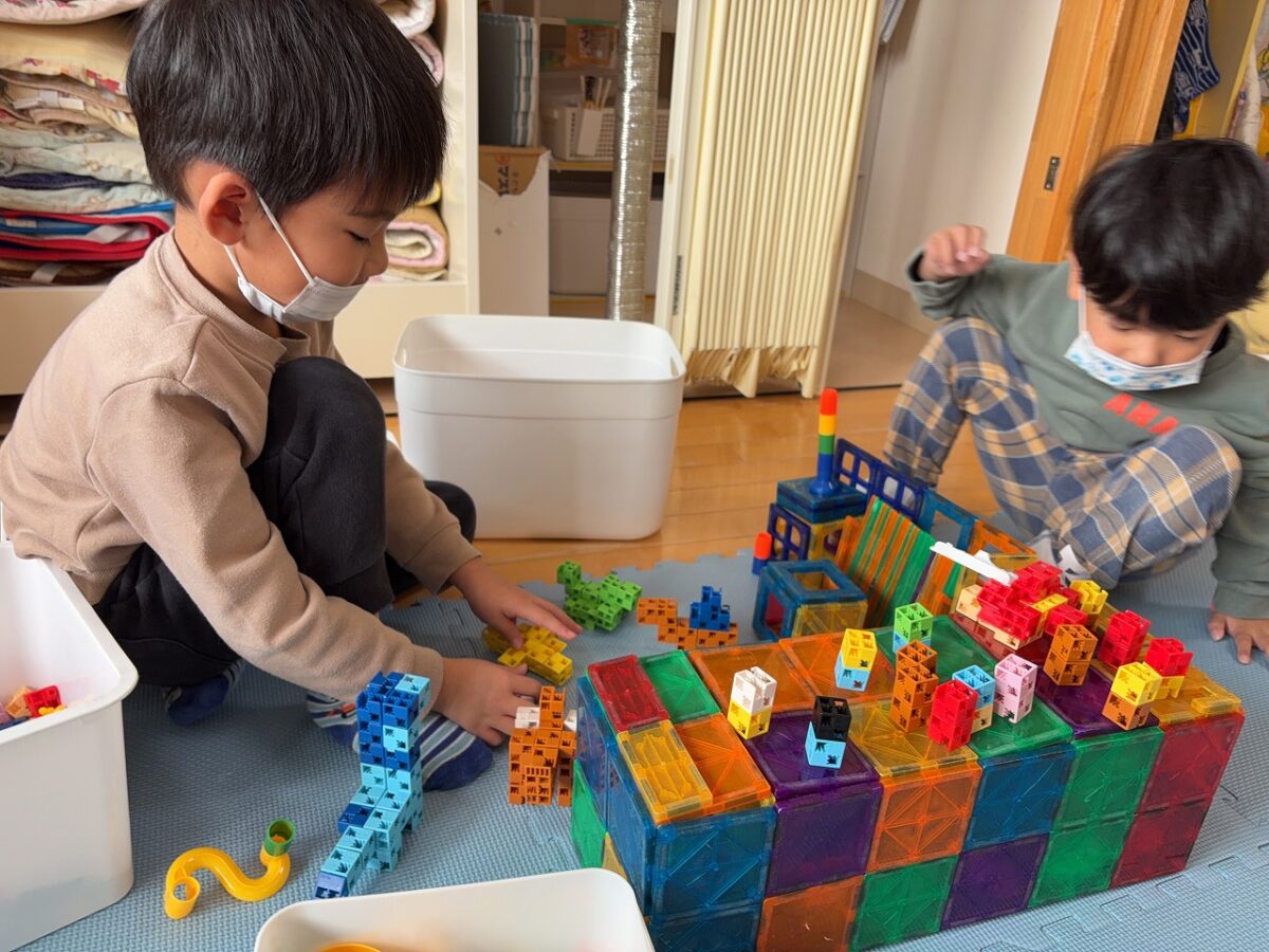 連休明け、久しぶりの登園で「○○に行ったよ」など、お休み中のお話しをみんなで楽しみ、ジュラシックパークを再現していました♪♪