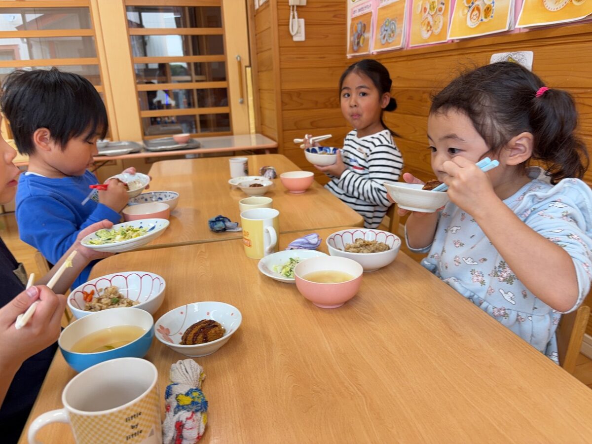 劇遊びなど、発表会の練習も頑張って待ちに待った給食✨✨