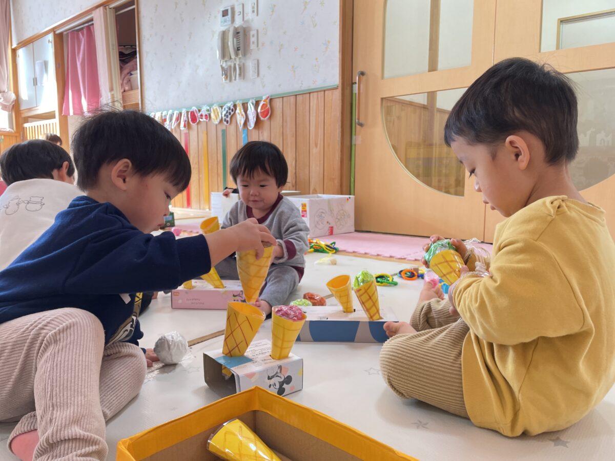 ごっこ遊びが大好きなひよこ組さん、今日もアイス作りが盛り上がっていました!