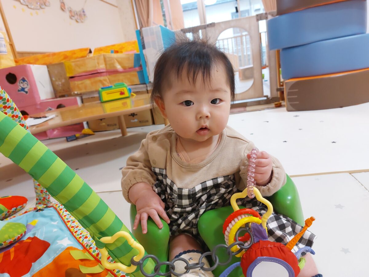 ねんねの体勢で過ごしていたお友達も、バンボに座ってお気に入りのてんとう虫のおもちゃを握りしめてご機嫌で過ごしました☆