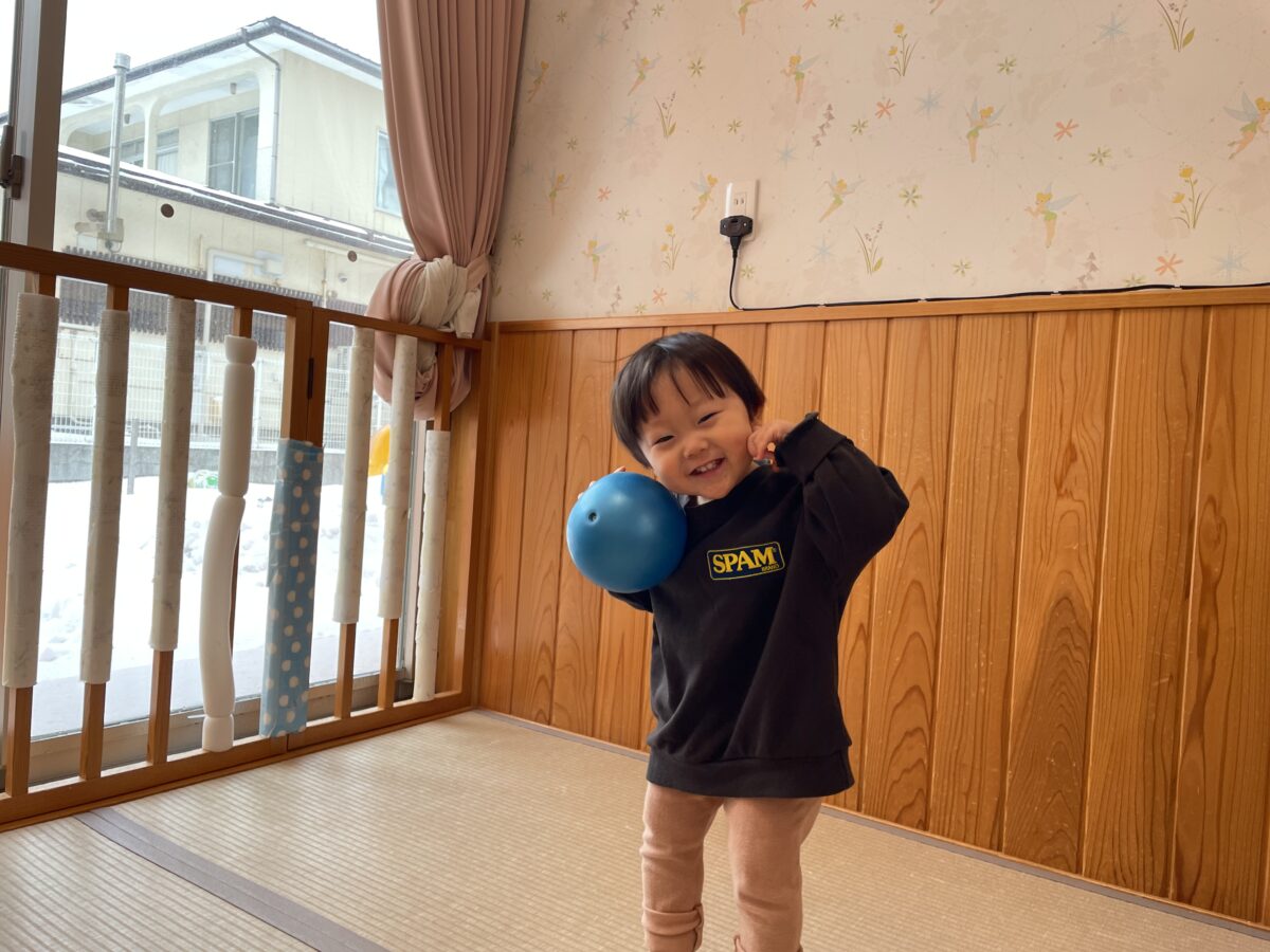 外はすっかり雪景色ですが、今日のはと組さんはお外に遊びに行くお友達とお部屋でボール遊びを楽しみお友達に分かれて遊びました☆お部屋でもみんな身体を思いっきり動かして心も身体もポカポカになりました♡