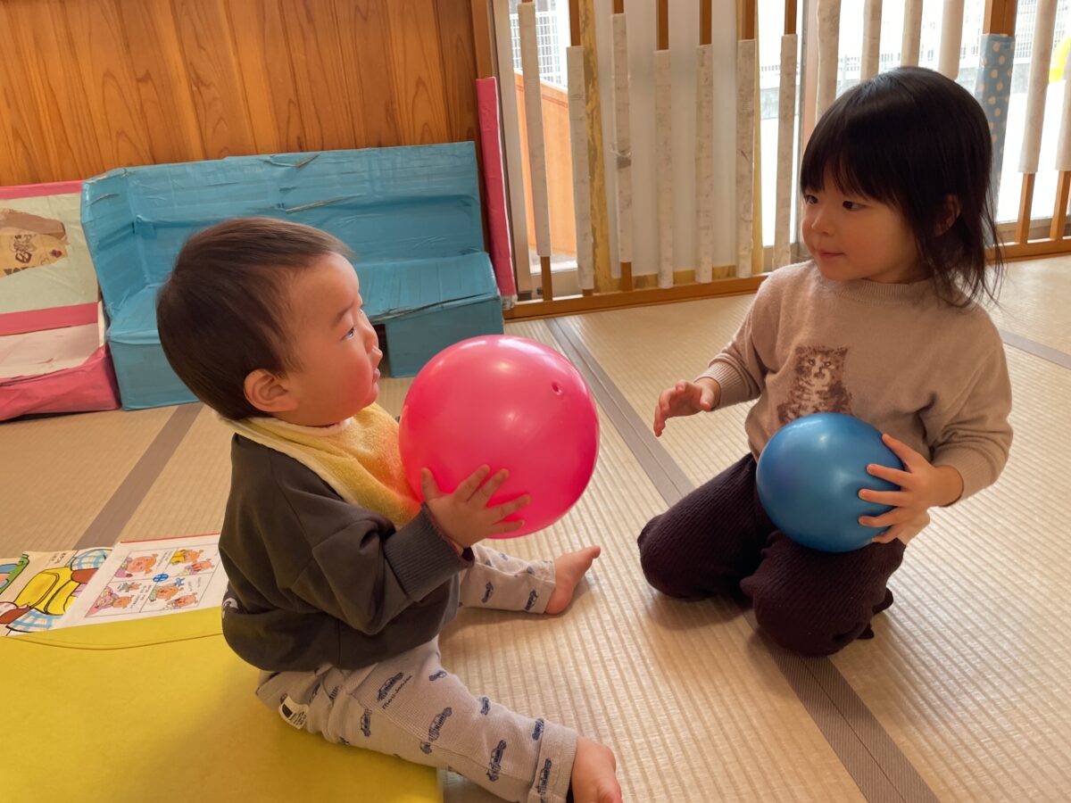 遊びに来ていたひよこ組のお友達が「はい、どうぞ!」とボールを渡してくれる姿もありほっこりした瞬間でした。