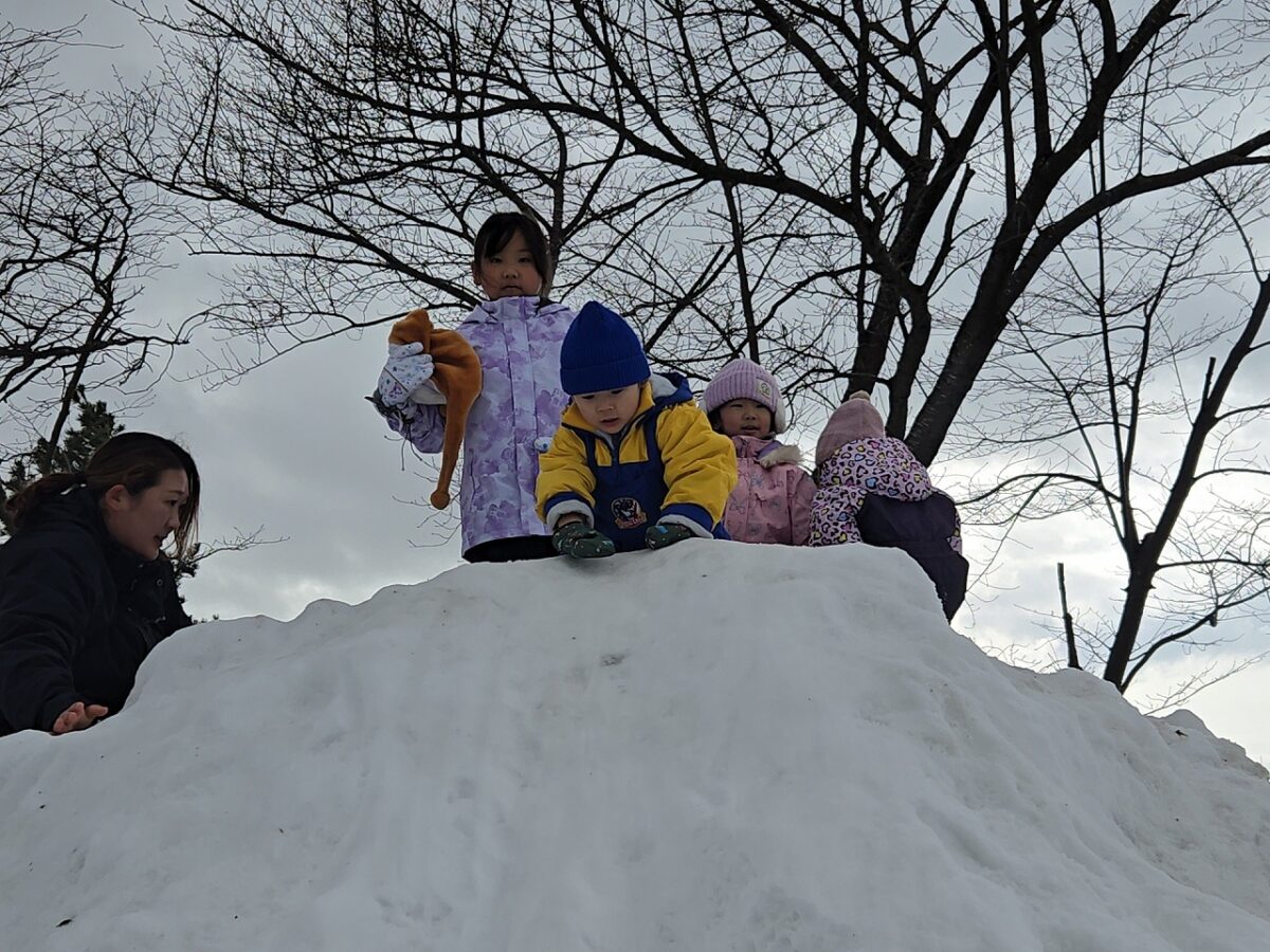 雪山に登ったり、坂を転がったり、追いかけっこをしたりとたくさん身体を動かして雪遊びを満喫♬