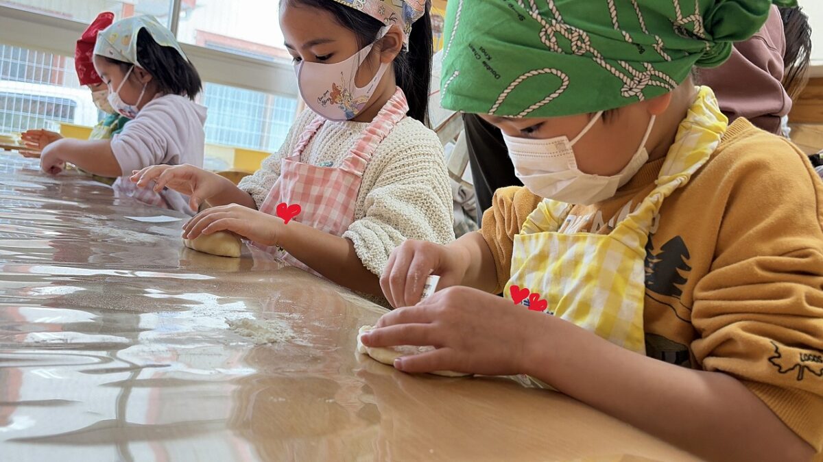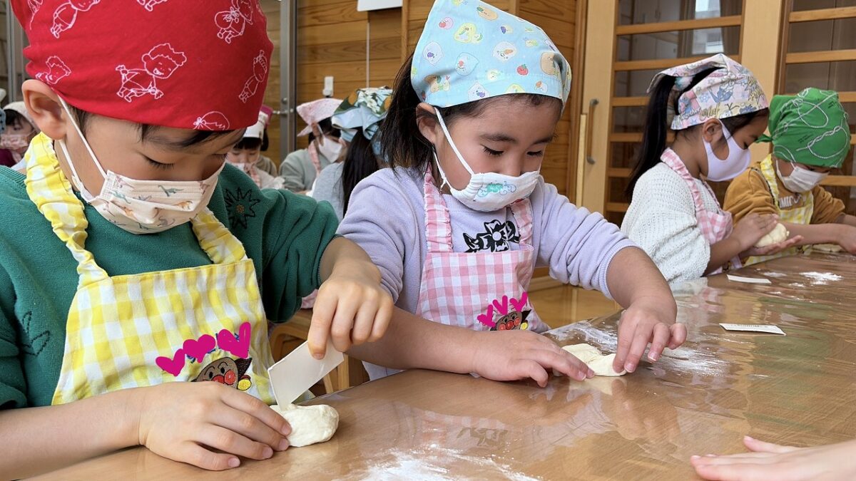 「伸ばして、形を作って、切って、開いて!」と、今までとは違う作り方で一生懸命に形を作る子ども達でした✨