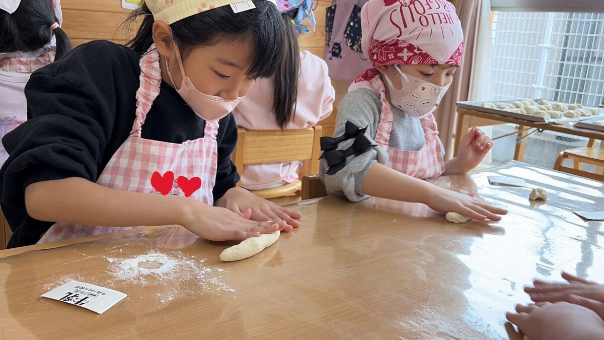 みんなで作ったハートのパンは、午後のおやつのお楽しみです💛
