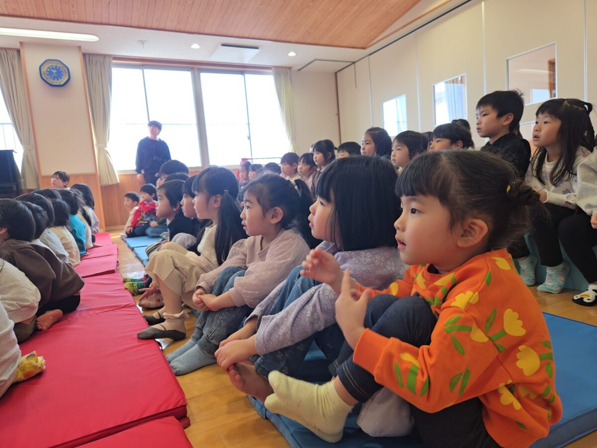 ももさんのミステリアスでかわいい雰囲気に子ども達も釘付け👀スカーフがスティックになったり、大きなスケッチブックに描いた絵がそのまま実物になったりと、子ども達の驚きも止まりません🤭