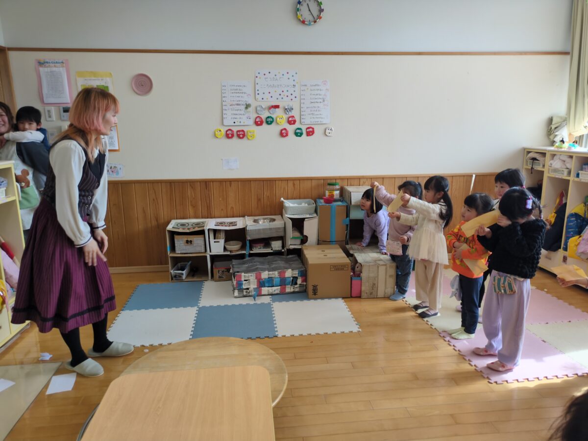 お部屋に帰ってから、「まだ自分達には魔法が残っている!」と張り切るひばり組さん💕ももさんの魔法にかけられて、身近な物で、ひばり組オリジナルマジックを披露しました🤭