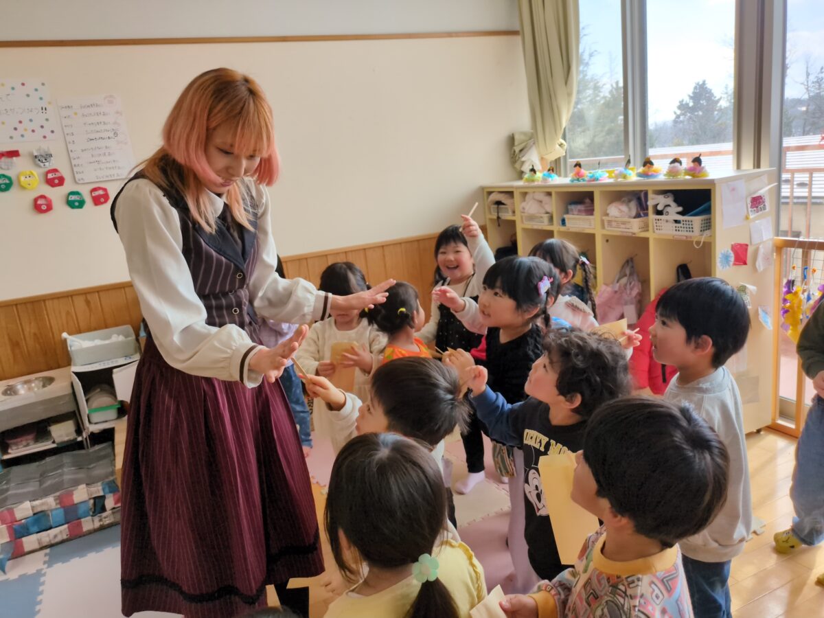 今日は「森の魔法レストラン」から、やまばと保育園卒園児の「もも」さんがマジックを子ども達に見せに遊びに来て下さいました!