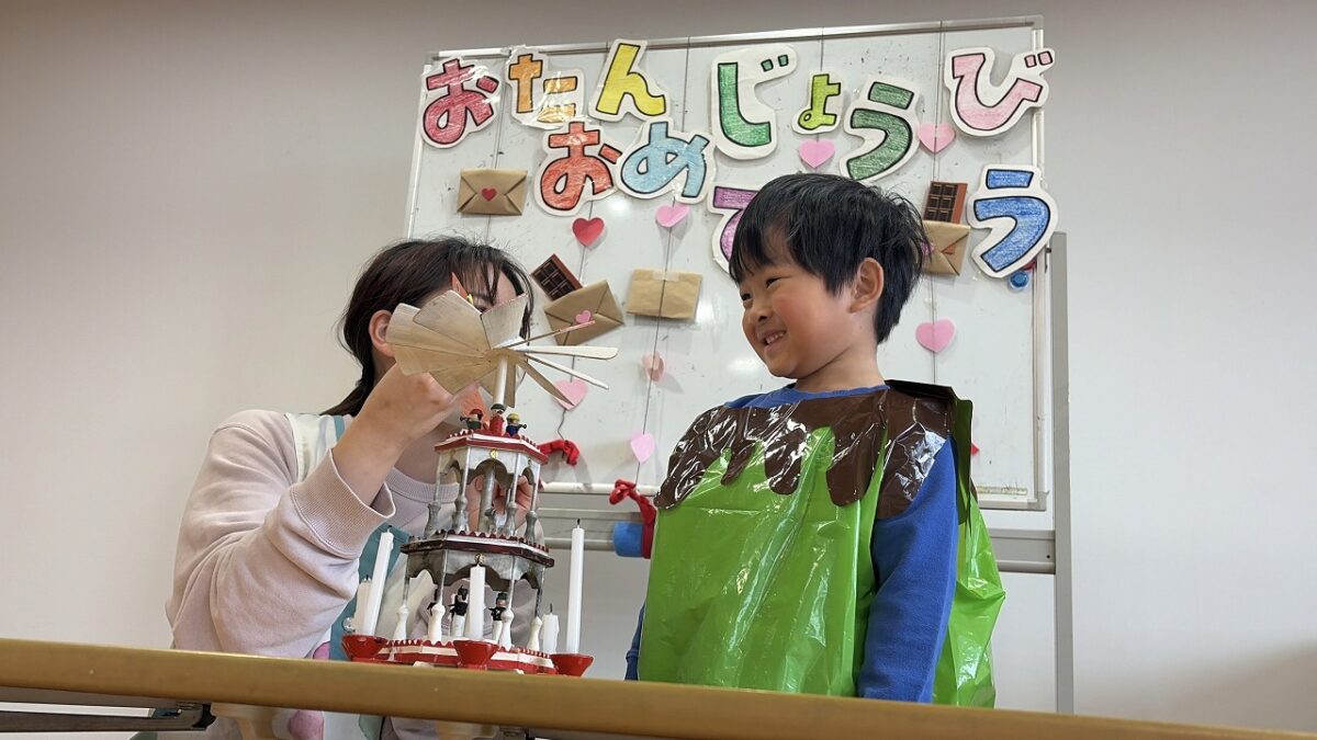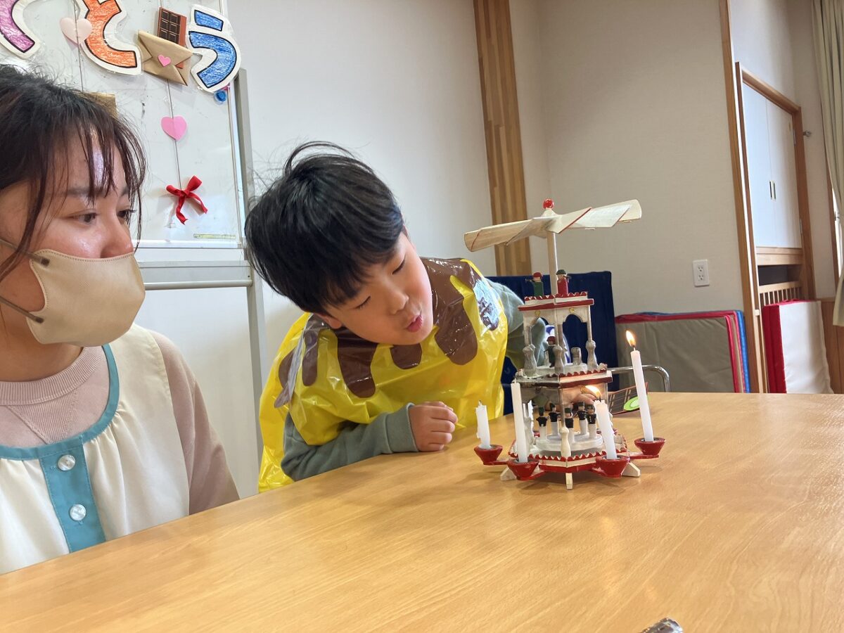 1年前は、恥ずかしくて下を見ていた姿もありましたが、今日はみんなの前で質問に答えたり、ロウソクを消したり✨