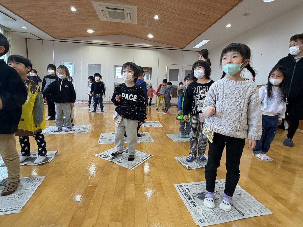 最後は、シルエットクイズを楽しんだ後で、新聞じゃんけんゲーム✋✌✊