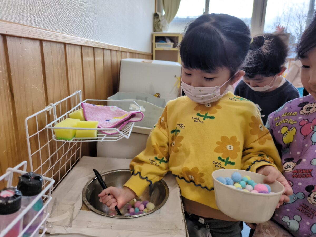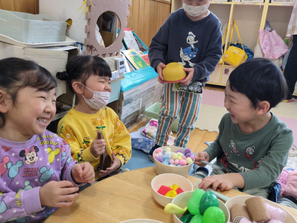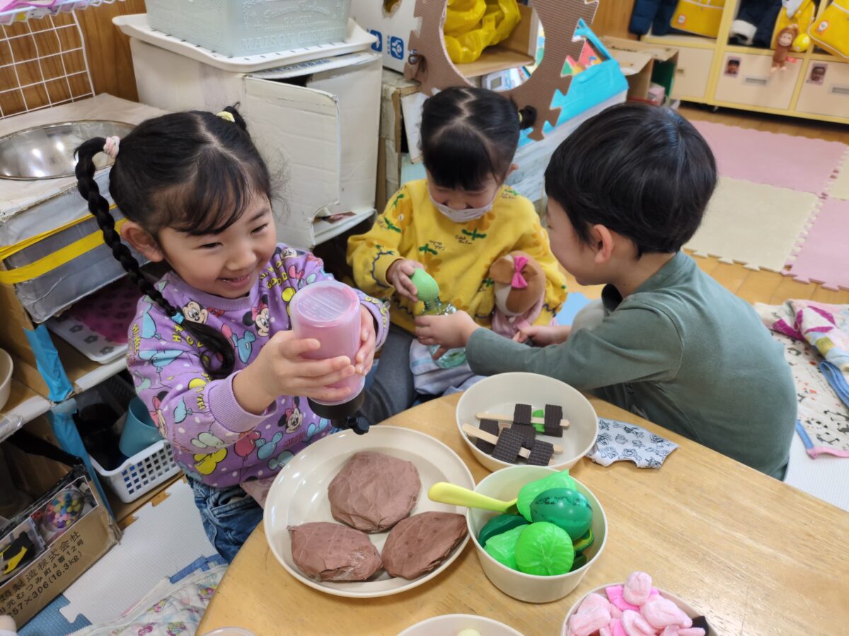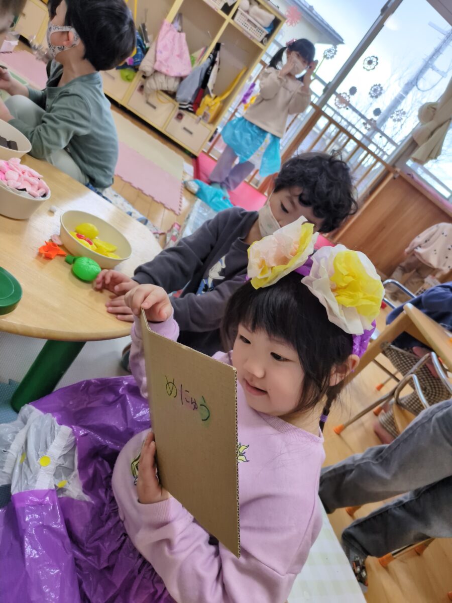 はと組さんの頃から大好きだったおままごとのやりとりが、保育士が間に入らなくても、子ども達だけでお店屋さんごっこが成り立つまでになり、成長を感じるかわいい嬉しい時間になりました👏