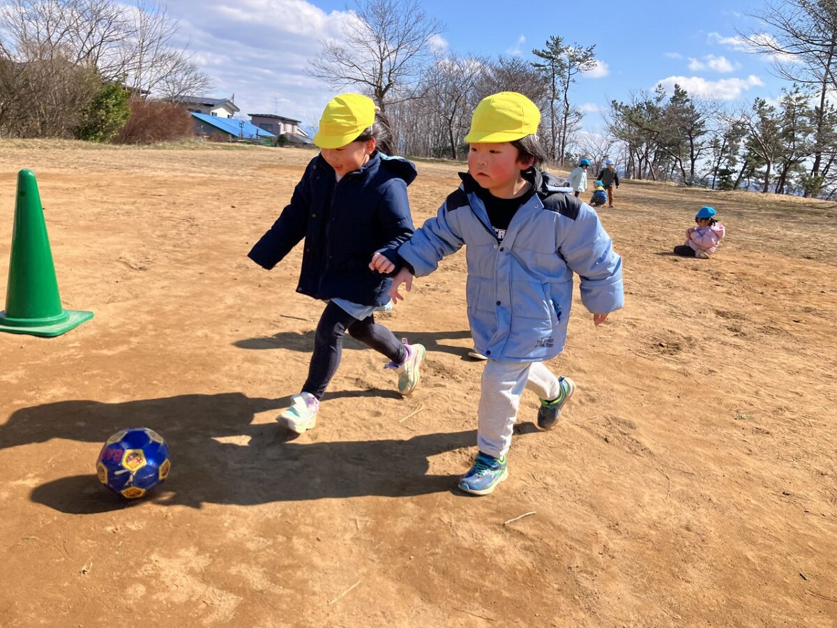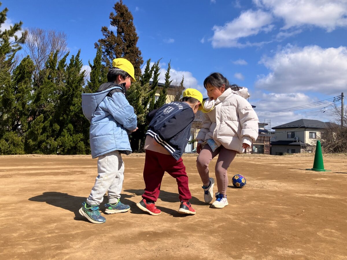 男の子チーム、女の子チームに分かれ、それぞれ作戦を立てて勝負に挑んだり、「いいよ!いいよ!」「1点取ろう!」と声をかけ合いながら勝負を楽しんでいました!