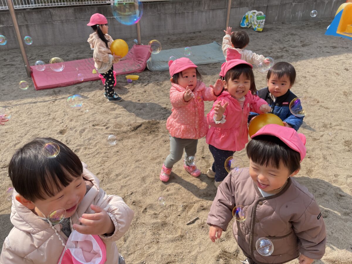 しゃぼん玉が始まると、みんなで追いかけて大盛り上がりでした💕