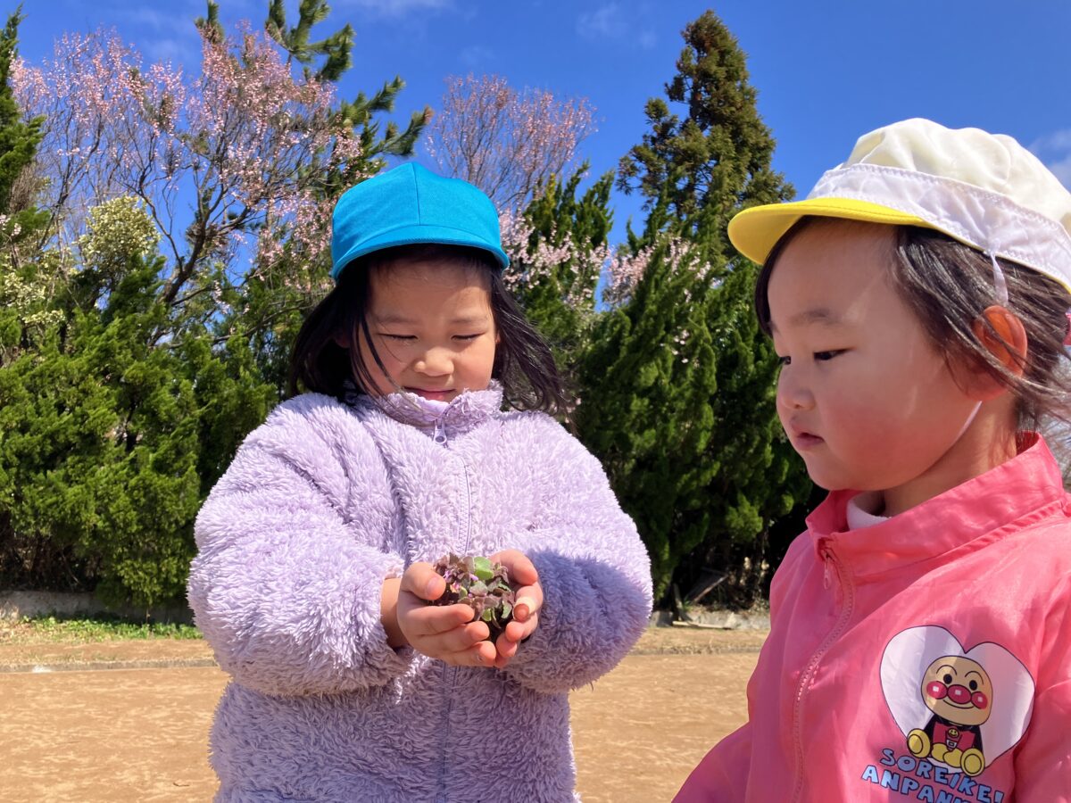 と見つけたのは桜の花🌸つぼみだったお花が開き始め、目を輝かせる子ども達😊