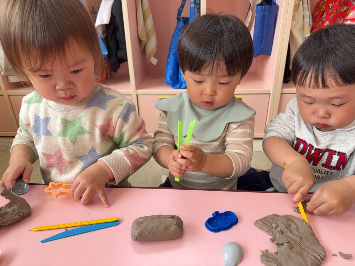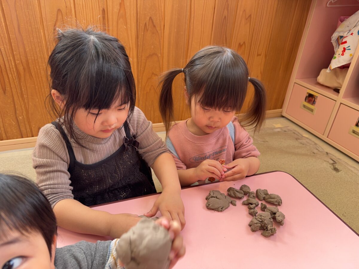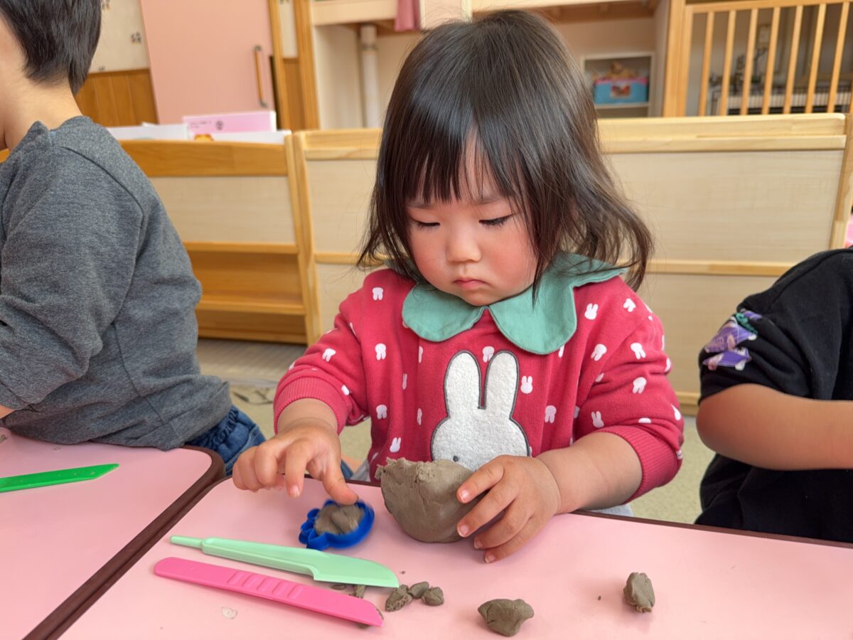 こねたり握ったりしながら粘土の感触を楽しみました✨