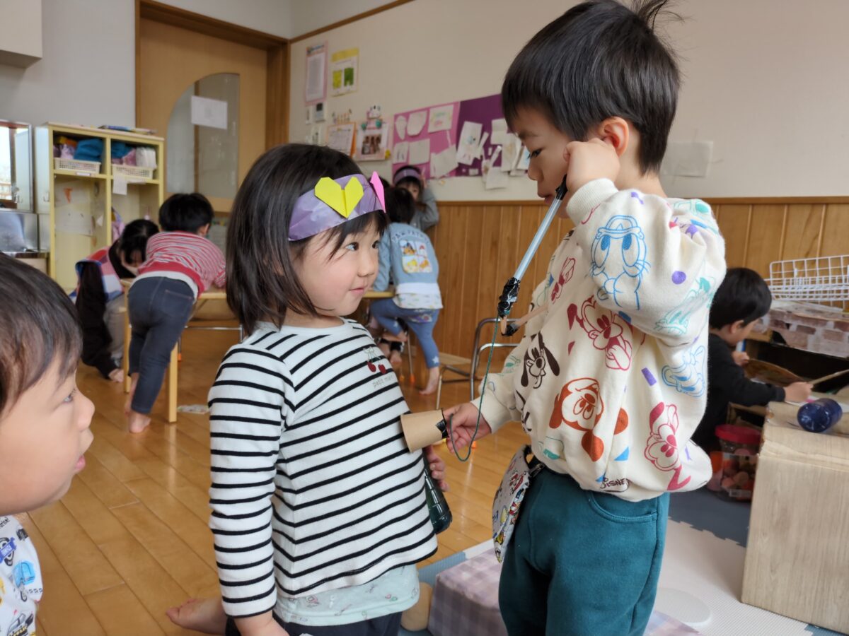 みんなで聴診器を作って、お腹や背中、時々ほっぺもポンポン🤭