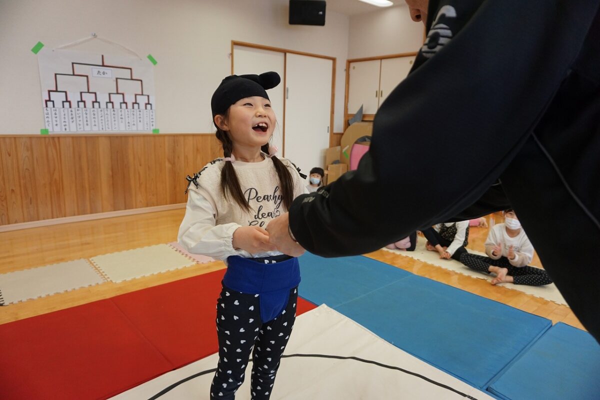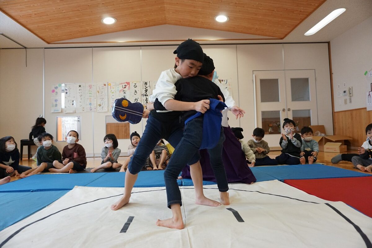 今年は様々な鬼を退治しました。最後に登場した怖い鬼にもみんなで力を合わせて立ち向かい見事退治し、自分の中の弱虫鬼、意地悪鬼などたくさんの鬼を退治できました。