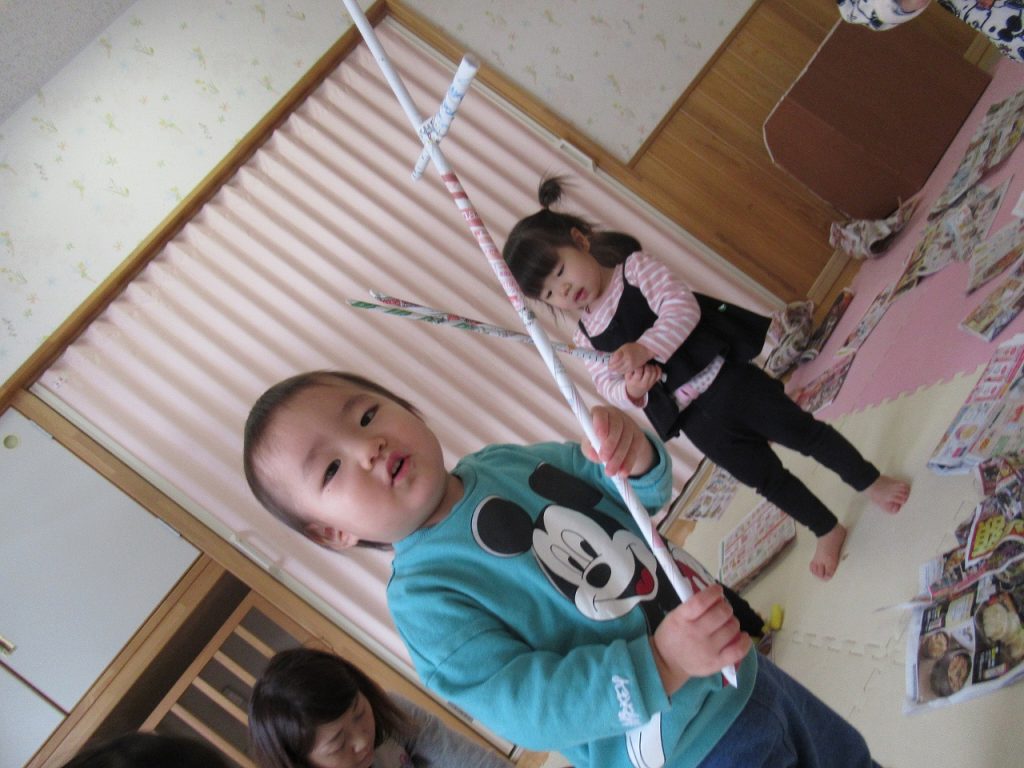 鬼が大好きなひよこ組さん!今日は鬼を倒すために、節分の予行練習をしました☆ 新聞紙でかっこいい武器を作る中、まさかの自分達が鬼に!! カメラに向かってはい、ポーズ☆ 最近はなりきって遊ぶことができるようになり、自分たちな […]