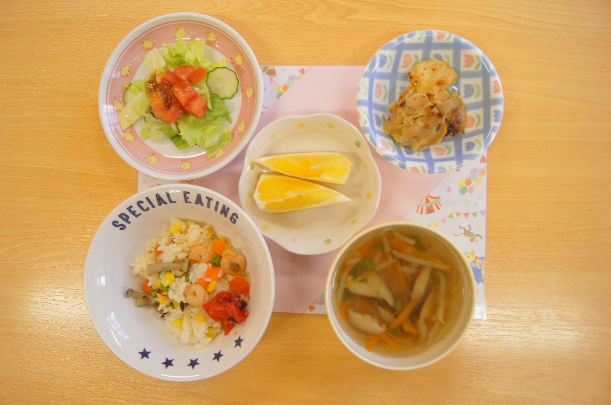 5月30日今日はぷりぷりの海老がおいしい、エビピラフでした。