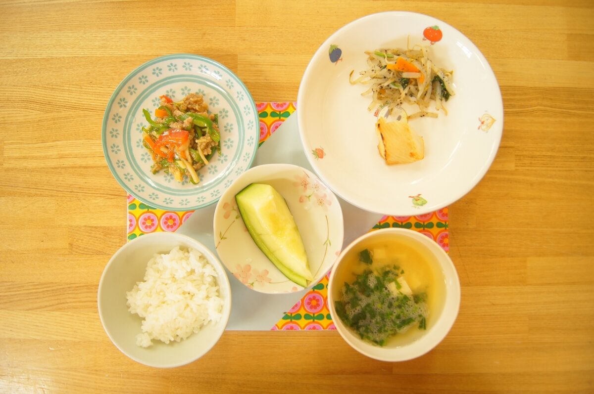 7月30日今日は久しぶりに、鯖のカレー醤油焼きでした。にんにくが効いていて、カレーの香りが食欲をそそります!最近は気温が高いので、暑い夏でも食欲がわくようなおいしいメニューを提供していきたいと思います!7月29日今日は夏野菜の一つであるかぼちゃをかき揚げに入れて食べました!かぼちゃは食物繊維やビタミン類が豊富で、粘膜の保護や腸内環境を整える効果があります。子どもたちはかぼちゃを探しながら楽しそうに食べていました。7月26日今日は誕生会メニューでした。気温が30度を超える猛暑となり、ひんやりとした冷製パスタやサラダがより一層美味しく感じました!パプリカや枝豆など夏野菜を使い、彩りの良いメニューです。7月25日今日は新メニュー、たたききゅうりの胡麻おかか和えでした。きゅうりはビタミンCやカリウムを含み、腎臓の働きを助けてくれます。モロヘイヤのみそ汁はとろみがあり、子ども達から人気でした。7月24日今日は久しぶりに、豚肉と玉ねぎのケチャップサンドでした。子どもの好きなケチャップ味で、暑い日でも食欲がわきます!大きなお口でもぐもぐとたくさん食べてくれました!7月23日今日は旬のインゲンをたっぷり使ったスープでした。インゲンのほかにズッキーニも入れ、夏を感じる一品です。ズッキーニはカロテンやビタミンCを含み、風邪予防に効果的です。7月22日今日は肉丼に、さっぱりとしたオクラの浅漬けでした。オクラのネバネバは腸内環境を整えたり、粘膜を保護してくれる働きがあります!7月19日豚肉のチャーシューはじっくり時間をかけて煮ることで、とってもやわらかく仕上がりました。キャベツには特製ドレッシングをかけていただきました。7月18日今日は、サラダにはアイスプラント、スープにはズッキーニにオクラなどと、夏野菜がたっぷり入ったメニューでした!ひばり組さんが育ててくれたミニトマトが収穫できたので、サラダに入れてみんなで食べました!7月17日今日は鮭のスタミナ焼きでした。にんにくが効いていて、食欲がわきます!煮物にはレバーを入れ、栄養満点なメニューでした!7月16日今日は鶏の南蛮風でした。ソースの玉ねぎは辛みが無く、シャキシャキとした食感が楽しめました!鶏のから揚げにポン酢を絡めて、さっぱりといただきました。7月12日今日のサラダには以上児さんが皮をむいてくれたミズをトッピングしました!家庭ではなかなか食べないミズですが、とろとろとしていて美味しかったようです!7月11日今日は鶏の旨味が溶け出た、具だくさんなパスタスープでした。サラダの胡麻は、すりごまを使用することで、胡麻に含まれるカルシウムやセサミンを吸収しやすくなります!7月10日今日はみそ汁におかひじきを入れました。おかひじきはカルシウムが豊富で、骨を丈夫にしてくれます。酢豚には豚肉の代わりに揚げない肉団子を使用しているので、副菜でも重くなく食べられます!7月9日新メニューのみそだれチキンカツ丼は、やわらかいチキンカツに濃厚なみそだれが絡み、ぺろりと食べられちゃいます!オクラのネバネバパワーで暑さに負けず元気に過ごしましょう!7月8日今日はお天気が良く暑い日だったため、涼しい冷やし中華がぴったりでした。ひじきは鉄分をたくさん含んでいるので、積極的に摂取したい食材です。7月5日今日は七夕の行事食でした。天の川の夜空をイメージしたカレーライスに星形のチーズで織姫と彦星を再現し、子ども達は「お星さまいっぱい!」と大喜びでした!