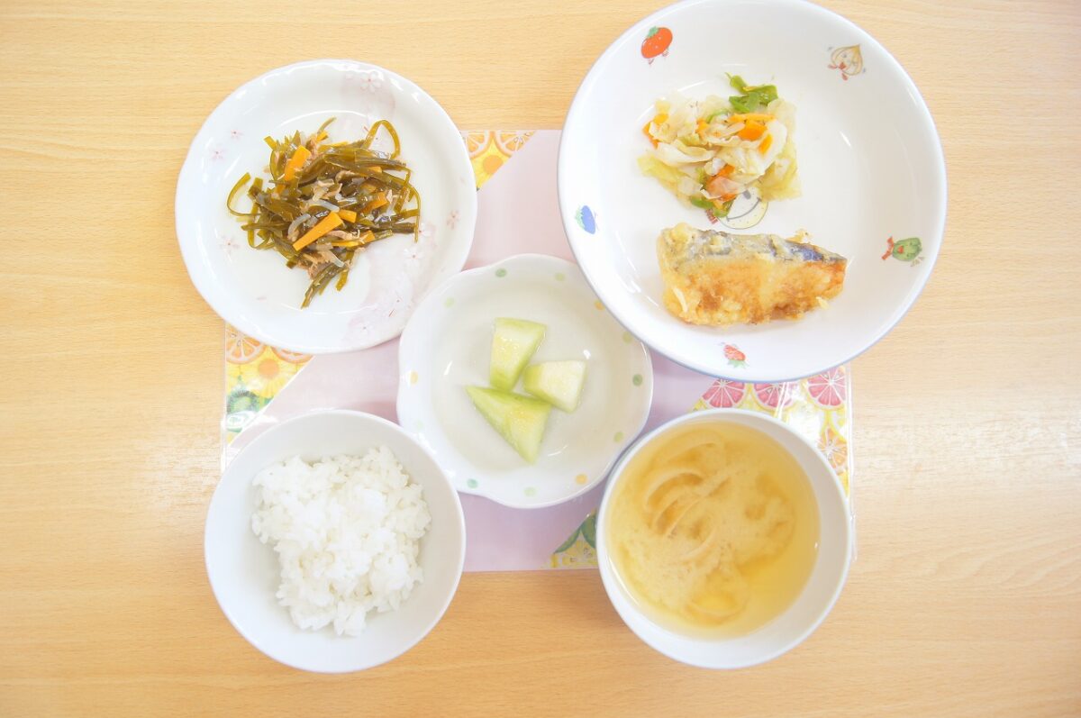 8月31日今日は鶏の唐揚げに味ぽんとネギのソースをかけ、さっぱりといただきました。モロヘイヤのとろとろとしたみそ汁は子どもにも人気です☆8月30日今日は鯖のカレー醤油焼きでした。にんにくやカレー粉の風味が食欲をそそり、味も染みていてごはんが進みます!8月27日8月の誕生会メニューは夏らしさのあるヒマワリをテーマにしました。ターメリックライスとドライカレーで作ったヒマワリが可愛らしいです♡8月26日今日は衣に粉チーズを混ぜ込んだチーズヒレカツでした。チーズの存在感は強くはありませんが、カルシウム摂取になり、やわらかいヒレ肉が子どもにも食べやすいです!8月25日今日のビーフンソテーには彩りでズッキーニを使用しています。隠し味のオイスターソースが味に深みを出してくれておいしいです☆8月24日今日はさっぱり美味しい、冷やし中華でした。三色かき揚げには、かぼちゃ・いんげん・人参が入っており、サクサクといい食感です♪8月23日今日は焼肉のタレを使った、ほっけの漬け揚げでした。みそ汁には夕顔が入っており、夏らしさの感じる一品です。8月20日今日はガパオライスでした。ふわっとオイスターが香り、食欲が湧きます!デザートにはデラウェアが登場し、子どもたちも喜んでいました☆8月19日今日はしっとり食パンのサンドイッチでした。ハム、チーズ、マヨネーズがサンドされ、食べ応えがあります。チャウダーにはぷりぷりな小エビが入っています♡8月18日今日はコーンを混ぜ込んだハンバーグでした。しっとりとやわらかいハンバーグに、手作りのデミグラスソースをたっぷりかけていただきました!8月17日今日はニラやごま油、焼き肉のタレを使い、プルコギ風に味付けした牛丼でした。食べなれた食材と調味料を使っているので、子どもたちも良く食べてくれます☆8月16日すき昆布煮にはツナを入れ、うまみたっぷりで子どもたちも大好きなメニューです!みそ汁は大根の優しい味わいが広がります。8月12日今日は焼肉丼でした。タレがご飯に染みて食べやすく、子どもたちもたくさんおかわりしてくれました。みそ汁にはとろっとやわらかいナスがたっぷり入っています。8月11日今日はツルツルと食べやすいそうめんでした。揚げ玉・カニカマ・きゅうりがトッピングされています。ポテトサラダにはブロックベーコンを使い、炒めて香りを引き出しています。8月10日今日は子どもたちの大好きな、カレーピラフでした。甘口のカレー粉を使い、子ども向きな優しい味わいです。ピーマンやパプリカなど旬の野菜も取り入れています☆8月6日今日はムキカレイの香味焼きでした。お塩とだし醤油で優しい味わいに仕上げ、程よい塩加減でご飯が進みます。暑い夏にはレバーとニラの組み合わせで、スタミナをつけましょう!!8月5日今日は和風だしの効いた、夕顔のあんかけでした。とろっとやわらかい夕顔には食物繊維が多く含まれ、腸内環境を整える効果があります。8月4日今日はさっぱりとした中華和えでした。酢とごま油が香り、暑い日でもツルっと食べられます!みずみずしくて甘いスイカは、火照った体を冷やしてくれます。8月3日今日の焼肉丼には、たか組さんが収穫してくれたピーマンが入っています♡ウインナーソテーは素揚げしたじゃがいもをコンソメでサッと炒めました。月別アーカイブ