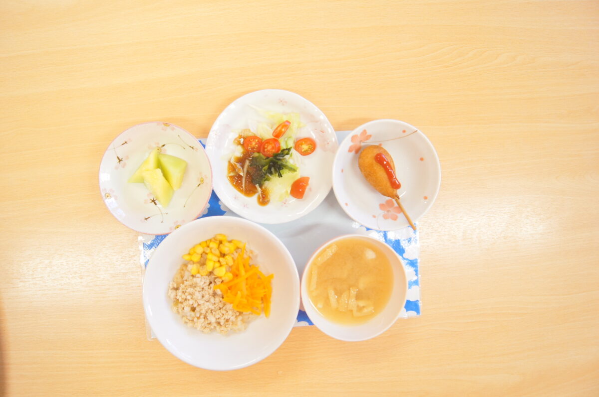 8月30日今日は、鶏のガリバタ焼きでした☆ガーリックと、バターの香りが食欲をそそり、ご飯が進む一品です♪8月29日今日はひんやり美味しい冷やし生うどんです♡もちもちとした食感がくせになり、蒸し暑い日でも美味しく食べられます☆今年初めての梨も登場し、しゃくしゃくとした食感が楽しいです♬8月28日今日は、黄パプリカと、ピーマンの入った色鮮やかなつくねでした☆デザートには、上品な甘さの北限の桃を使用しました♡8月27日今日は、大人気メニューのミートソーススパゲティでした☆新メニューのもずくスープは、オクラともずくのとろみで飲みやすい一品です♬8月26日今日は鮭の塩麴焼きでした☆カルシウムたっぷりのひじきごはんと相性良く、子どもたちからは沢山おかわりの声が上がりました♬8月23日今日は、花火ランチでした☆メインは花火が打ちあがっているように見える綺麗なビビンバ丼です。プリプリとした海老の乗ったサラダには、子どもたちが育てたきゅうりとトマトも入っています♡8月22日今日はサクッとした衣が美味しいほっけの磯辺揚げです☆青のりの良い香りが美味しい一品です♬旬のなすをたっぷりと使った炒め物は、牛肉と野菜のうまみが良く出ており、ご飯によく合う味付けです。8月21日今日は、マヨネーズのまろやかさが美味しいハムチーズサンドでした☆ワンタンスープには、つばめ組さんが育てたオクラを使いました♡8月20日今日は人気メニューのハンバーグです☆ケチャップソースとの相性が良く、子ども達はたくさんおかわりしてくれました♬あんかけには旬の夕顔を使い、柔らかく甘みがあり食べやすいです!8月19日今日は、さっくりと揚がったお好みチキンカツです♡パラパラとかつお節をかけて食べました。ひじき煮は、優しい味わいに仕上がっています。8月16日今日は、肉丼でした☆糸こんにゃくや、椎茸など様々な具材が入っており食べ応えがあります。揚げシュウマイも食感良くカリッと揚がっており大人気でした♡8月15日今日はエビピラフでした☆カラっと揚がったフライドポテトは、子ども達に大人気でした♡8月9日今日はさっぱりとしたツナを、まろやかなマヨネーズで和えたツナマヨサンドです☆キャベツも入っているのでシャキシャキとした食感が美味しいサンドイッチです♡8月8日今日は、色鮮やかな三色丼でした☆優しい味わいの鶏ひき肉や野菜が味付きごはんとよく合います。海藻サラダには、子どもたちが育てたおいしいミニトマトをたっぷりと載せました♡8月7日今日はアジのマスタードマヨ焼きです☆マヨネーズのまろやかさとマスタードのピリッとした味付けが、ご飯によく合います♬レバニラ炒めは鉄分たっぷりで栄養満点です!8月6日今日は、わかめざる中華でした☆とても暑い日でしたがさっぱりと食べる事ができるわかめざる中華は、おかわりの声が沢山上がりました♡ポテトサラダは、ベーコンの塩気が良く感じられます。8月5日今日は夏にぴったりなガパオライスです☆たか組さんが採ってくれたピーマンをたっぷり使い、彩り良く仕上がってます♬8月2日今日はお肉のうまみたっぷりな牛丼です☆ご飯との相性が良く、子ども達にも大人気でした♡月別アーカイブ