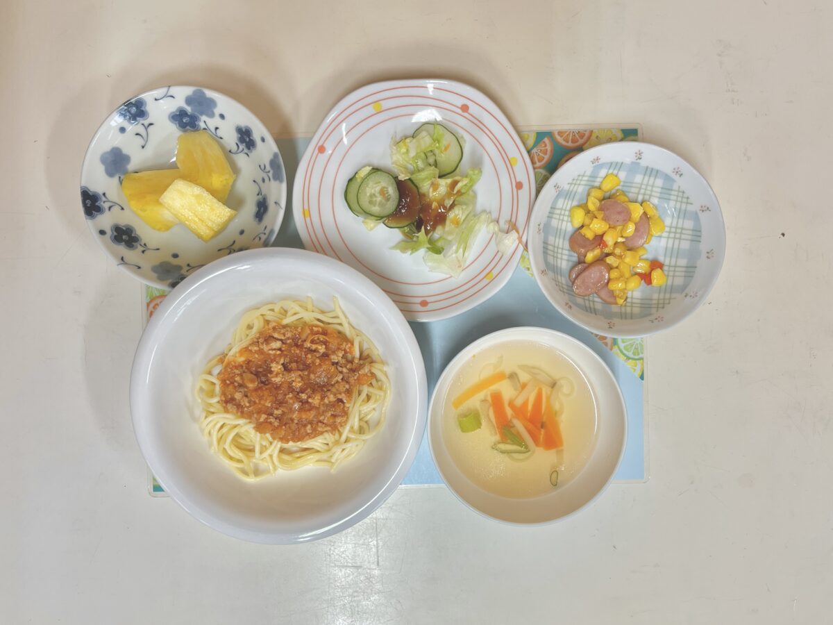 12月29日今日は肉丼でした☆お肉が柔らかく、ごはんが進む味付けとなっています♪旬のキャベツは甘く柔らかくて、子どもでも食べやすいです💕12月26日今日は秋田の郷土料理、きりたんぽでした♡しっかり煮込んでおり味が染みていて、子ども達にも大人気でした♬12月25日今日は、ミートソーススパゲティでした☆ミートソースは、野菜の旨味たっぷりで子どもたちからも大人気でした♬サラダや、ソテー、スープどれもたくさんおかわりしてくれました♡12月24日今日はクリスマス会でした🎄寒い日にぴったりのクリームシチューで体を温めてくれます♪ジューシーな骨付きチキンに、子ども達は嬉しそうにかぶりついていました♡12月23日今日は、ムキカレイの香味焼きです☆柔らかく食べやすく焼き上がっており、子どもたちからも好評でした♪鶏肉のケチャップ炒めは、酸味を抑えたケチャップ味で食べやすく仕上がってます♡12月22日今日はえのきつくねでした☆えのきが入ることで食感良く、ふんわりと焼き上がっています♫みそ汁には旬のキャベツを使い、甘みがあり美味しいです♡12月19日今日はドライカレー風ピラフでした☆ドライカレーのスパイシーな風味が美味しく、子ども達にも人気のメニューです♪みそ汁には牛乳を加え、まろやかに仕上げました♡12月18日今日は、ペンギンがテーマのランチでした☆黄色いくちばしのついたペンギンのおにぎりは、子どもたちからもかわいい~♡と好評でした♬マカロニサラダには、魚と星の人参をトッピングしました。12月17日今日はハムチーズサンドでした♬ふんわりとした食パンと相性良く、子ども達にも大人気でした☆スープは野菜たっぷりで、体を温めてくれます💕12月16日今日は、鮭フライタルタルでした♬外はサクサク、中はしっとりの鮭フライにタルタルソースがよく合います☆けんちん汁は、サトイモなど具だくさんに仕上げ体の温まる一品です♡12月15日今日は鶏のガリバタ焼きでした♬ガーリックとバターの香ばしい風味が美味しい一品です☆オランダ煮は高野豆腐を一度揚げてから煮込んでいるので、ふんわりととろみがついており食べやすいです♡12月12日今日はハヤシライスでした☆寒い日にあったかいハヤシライスと白菜スープで、体をぽかぽかに温めてくれます♫白菜は旬なので、柔らかく甘みがあり美味しく食べて貰えました☆12月11日今日は、アジのマスタードマヨ焼きでした。まろやかなマスタードマヨソースがアジにたっぷりの乗っており人気のメニューでした♬レバー炒めは、にらが入っておりスタミナみなぎる味付けになっています☆12月10日今日はハンバーグサンドでした☆濃厚なデミグラスソースのハンバーグをふわふわのバターロールでサンドしました♫子ども達にも大人気でした♡12月9日今日は、豚肉の生姜焼きでした☆生姜の風味をしっかりと感じることができ、からだの温まる一品です♫みそ汁には、旬の白菜をたっぷりと使用しました♡12月8日今日は冬の定番、おでんでした☆しっかり煮込んだ大根は味がしみており、柔らかく食べやすいです♫サラダには旬のカブを使い、甘く食感は柔らかいです♡12月5日今日は冬の大人気メニュー、ラーメンでした♬手作りのチャーシューはじっくり煮込み、うまみがたっぷりと出ています☆子ども達もたくさんおかわりしてくれました♡12月4日今日は、鯖の味噌煮でした☆じっくりと煮込んだ鯖には、しっかりと味が染みておりごはんの進む味です♪蓮根のマヨ炒めは、焼肉のタレとマヨネーズが良く合います💕12月3日今日は海老カツサンドでした☆ふわふわのバターロールと、サクサクの海老カツの相性が良く、子ども達にも人気でした♬冬にぴったりのクリームシチューで、身体も心もぽかぽかです♡12月2日今日は、ペッパーライス風牛丼でした☆バターが香るご飯にお肉とコーンをたっぷりと乗せました💕今が旬の柿は、きれいなオレンジ色でとってもあまい味わいでした。月別アーカイブ