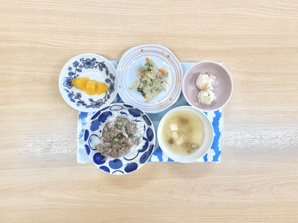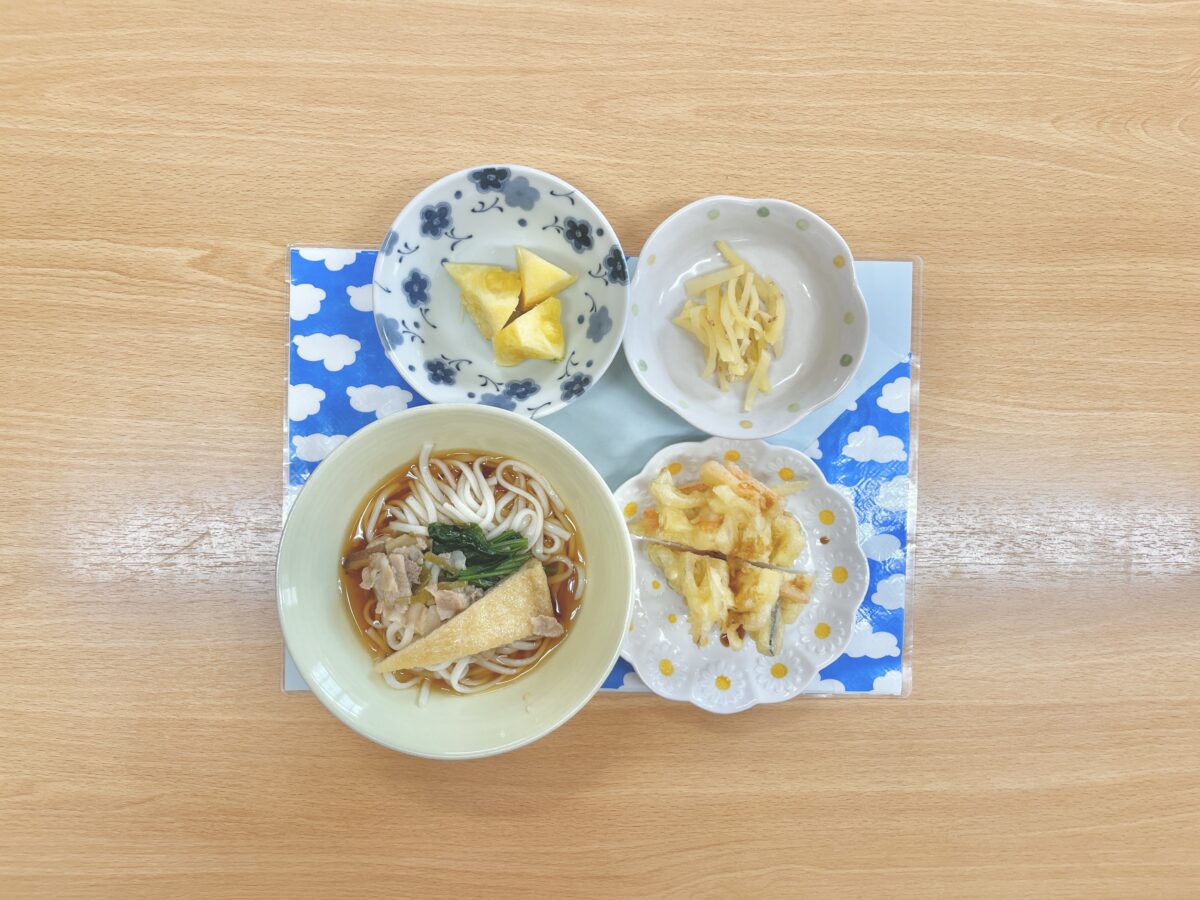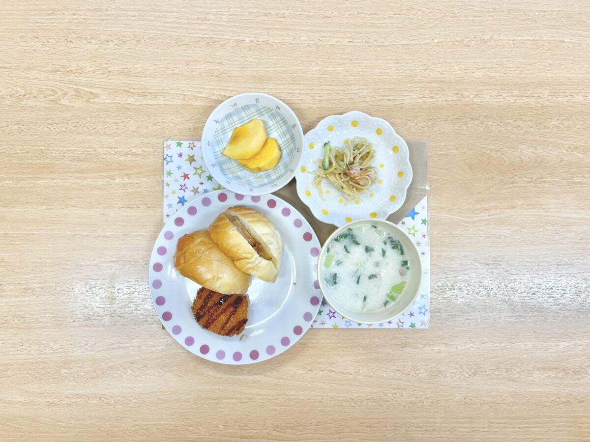 11月18日寒い日にぴったりの五目うどんでした☆豚肉とネギの旨味が良く出た出汁です♪かき揚げは、プリプリの海老がたっぷりと入っておりうどんとの相性も良いです。11月17日今日はチキンカツでした♬お好み焼き風に、ソースと鰹節をまぶして食べるととっても美味しいです☆子ども達にも大人気でした♡11月14日今日は、人気メニューのハンバーグでした☆フワフワのハンバーグにデミグラスソースが良く合います♫切干大根煮は、軟らかく煮込まれており優しい味わいです。11月13日今日は、照りマヨサンドでした☆甘じょっぱい照り焼きチキンと、マヨネーズが良く合います♫具だくさんなチャウダーは、体の温まる一品です。11月12日今日は柔らかいお肉が美味しいチャーシュー丼です♪じっくり煮込んでいるのでお肉が柔らかく、子ども達にも大人気でした☆サラダは春雨を使ったさっぱりとした仕上がりです😊11月11日今日は、鮭のコーンマヨ焼きでした☆コーンの甘みが璃食べやすい一品です。新メニュージャーマンポテトは、ベーコンの塩気がじゃがいもや玉ねぎによく合います♫11月10日今日は肉じゃがとひじきごはんでした☆肉じゃがのじゃがいもはホクホクとしており、子ども達にもよく食べられていました♡フルーツは今季初の甘くて美味しい柿でした♬11月7日今日は、肉丼でした。玉ねぎの甘みが良く出ており人気のメニューです♬ちくわの磯辺揚げは、磯の香りを楽しむことができます☆11月6日今日は鯖のカレー醤油焼きでした☆カレー風味の鯖はご飯が進む味付けで、子ども達にも大人気でした♬筑前煮は里芋がたっぷりと入っており、柔らかく優しい味わいです♡11月5日今日は、ウインナーサンドでした。ケチャップソースが良く絡んでおりとても人気のあるメニューです☆ワンタンスープは、様々な具材が入っており体の温まる一品です♡11月4日今日は、長ネギつくねでした♬旬の長ネギとたっぷりと混ぜ込みました♡すき昆布煮は、やわらかく煮込まれておりとても人気のあるメニューでした。10月31日今日は、ハロウィンがテーマのランチでした☆旨味たっぷりハッシュドビーフにかわいいおばけのごはんを乗せました👻かぼちゃのサラダは、ツナを使用してコクのある仕上がりになりました♡10月30日今日は大人気メニューのミートソーススパゲティでした💕子ども達は大喜びでたくさん食べてくれました♬スープに使っているキャベツは柔らかく甘みがあり、食べやすいです☆10月29日今日は、ボリューム満点牛丼でした☆新メニューのカブの和風サラダは、旬であるカブをたっぷりと使用しています♬10月28日今日は、ふんわりと焼きあがったムキカレイの塩麴焼きです☆優しい味わいでごはんが進みます♬蓮根のマヨ炒めは、蓮根の食感がクセになる一品です♡10月27日今日はわかめごはんと豚汁でした♬寒い時期にぴったりのメニューで、子ども達にもたくさん食べてもらえました♡サラダにはしらすが乗っており、カルシウムをたっぷり美味しく摂れます☆10月24日今日はきのこたっぷりのハンバーグでした🍄食物繊維豊富で、秋を感じさせるメニューとなりました☆10月23日今日は、ツナサンドでした☆マヨネーズのまろやかさがロールパンによく合います♬カレースープは、具材がたっぷりと入っており満足感のある一品です。10月22日今日は豚肉とごぼうの混ぜご飯でした☆みそ汁には里芋をたっぷり使っており、秋を感じさせるメニューとなりました🍂10月21日今日は、鮭の照り焼きでした。甘じょっぱい照り焼きは新米あきたこまちにぴったりです♬ポテトサラダは、カリカリベーコンが良いアクセントになっています♡10月20日今日は大人気メニュー、鶏のから揚げでした♬お肉は柔らかくジューシーで、ごはんが進む味付けになっています♡ひじき煮はカルシウムたっぷりで、こどもの成長を支えてくれます★10月17日今日は、卵サンドでした☆クリームチーズを混ぜることでなめらかでコクのある仕上がりになっています♬ワンタンスープは、野菜のうま味たっぷりで人気メニューでした。10月16日今日はドライカレー風ピラフでした🌟カレー風味のピラフで、野菜もたっぷり摂れます♬スープには旬の白菜を使い、甘みがあり柔らかく美味しいです♡10月15日今日は、アジのマスタードマヨ焼きでした☆マスタードのピリ辛さと、マヨネーズのまろやかさが良く合います♬レバー炒めは、臭みを感じられず食べやすくなっています。10月14日今日は肉丼でした☆野菜のうまみが出ている優しい味わいで、こども達にも大人気でした♬10月10日今日は鶏の照り焼き丼でした☆甘じょっぱい味付けで、こども達に大人気でした♬キャベツが美味しい時期となり、甘みがあってみそ汁によく合いますよ♡10月9日今日は、鯖の味噌煮でした☆中まで味のしみ込んだ鯖が白いごはんによく合います♬ケチャップ炒めや、すまし汁には旬であるキノコをふんだんに使用しています♡10月8日今日はベーコン
