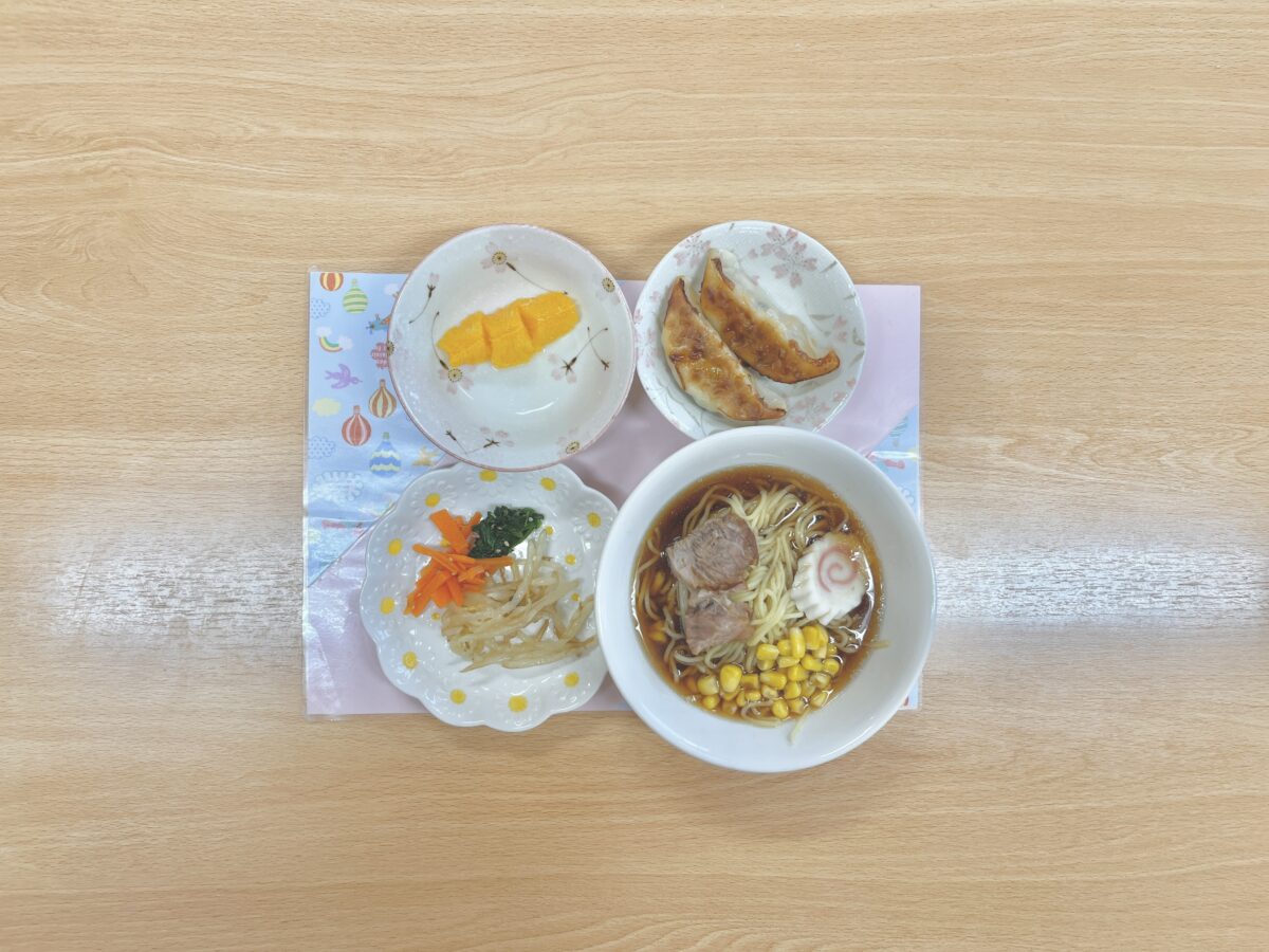 12月5日今日は冬の大人気メニュー、ラーメンでした♬手作りのチャーシューはじっくり煮込み、うまみがたっぷりと出ています☆子ども達もたくさんおかわりしてくれました♡12月4日今日は、鯖の味噌煮でした☆じっくりと煮込んだ鯖には、しっかりと味が染みておりごはんの進む味です♪蓮根のマヨ炒めは、焼肉のタレとマヨネーズが良く合います💕12月3日今日は海老カツサンドでした☆ふわふわのバターロールと、サクサクの海老カツの相性が良く、子ども達にも人気でした♬冬にぴったりのクリームシチューで、身体も心もぽかぽかです♡12月2日今日は、ペッパーライス風牛丼でした☆バターが香るご飯にお肉とコーンをたっぷりと乗せました💕今が旬の柿は、きれいなオレンジ色でとってもあまい味わいでした。12月1日今日は新米のサキホコレを使ったおにぎりと豚汁でした♪サキホコレは白くツヤツヤとしており、噛めば噛むほど甘く美味しいお米です💕子ども達も大喜びで食べてくれました☆11月28日今日は、ミッキーとミニーがテーマのランチでした♪お子様ランチをイメージしたプレートです💕ハンバーグには、可愛いミニーちゃんの形をしたスライスチーズをトッピングしました☆11月27日今日は大人気メニューのカレーライスでした☆プールで元気いっぱい遊んだあとで、子ども達はたくさん食べてくれました♬11月26日今日は、鶏の照り焼き丼でした☆柔らかい鶏肉に、あまじょっぱい照り焼きのタレがよく絡みます♪ブロッコリーの胡麻マヨサラダは、蓮根の食感がアクセントとなっております。11月25日今日は混ぜご飯でした♪牛肉と舞茸、椎茸の香りが良く出ており、子ども達にもよく食べられていました☆水菜のサラダはさっぱりとしており、シャキシャキとした食感を楽しめます💕11月21日今日はすき焼き風牛丼でした☆お肉と野菜のうまみたっぷり、すき焼き風の甘じょっぱい味付けでご飯が進みます♪11月20日今日は、アジの漬け揚げです♪サクサクに揚がった漬け揚げはご飯との相性抜群です☆牛肉のチャプチェは、ごま油が効いた一品です。11月19日今日は、ハムピカタサンドでした☆ソースがしみ込んだハムピカタは食パンによく合います♪コールスローサラダは、キャベツやきゅうりの食感を楽しみながら食べる事が出来ました。11月18日寒い日にぴったりの五目うどんでした☆豚肉とネギの旨味が良く出た出汁です♪かき揚げは、プリプリの海老がたっぷりと入っておりうどんとの相性も良いです。11月17日今日はチキンカツでした♬お好み焼き風に、ソースと鰹節をまぶして食べるととっても美味しいです☆子ども達にも大人気でした♡11月14日今日は、人気メニューのハンバーグでした☆フワフワのハンバーグにデミグラスソースが良く合います♫切干大根煮は、軟らかく煮込まれており優しい味わいです。11月13日今日は、照りマヨサンドでした☆甘じょっぱい照り焼きチキンと、マヨネーズが良く合います♫具だくさんなチャウダーは、体の温まる一品です。11月12日今日は柔らかいお肉が美味しいチャーシュー丼です♪じっくり煮込んでいるのでお肉が柔らかく、子ども達にも大人気でした☆サラダは春雨を使ったさっぱりとした仕上がりです😊11月11日今日は、鮭のコーンマヨ焼きでした☆コーンの甘みが璃食べやすい一品です。新メニュージャーマンポテトは、ベーコンの塩気がじゃがいもや玉ねぎによく合います♫11月10日今日は肉じゃがとひじきごはんでした☆肉じゃがのじゃがいもはホクホクとしており、子ども達にもよく食べられていました♡フルーツは今季初の甘くて美味しい柿でした♬11月7日今日は、肉丼でした。玉ねぎの甘みが良く出ており人気のメニューです♬ちくわの磯辺揚げは、磯の香りを楽しむことができます☆11月6日今日は鯖のカレー醤油焼きでした☆カレー風味の鯖はご飯が進む味付けで、子ども達にも大人気でした♬筑前煮は里芋がたっぷりと入っており、柔らかく優しい味わいです♡11月5日今日は、ウインナーサンドでした。ケチャップソースが良く絡んでおりとても人気のあるメニューです☆ワンタンスープは、様々な具材が入っており体の温まる一品です♡11月4日今日は、長ネギつくねでした♬旬の長ネギとたっぷりと混ぜ込みました♡すき昆布煮は、やわらかく煮込まれておりとても人気のあるメニューでした。10月31日今日は、ハロウィンがテーマのランチでした☆旨味たっぷりハッシュドビーフにかわいいおばけのごはんを乗せました👻かぼちゃのサラダは、ツナを使用してコクのある仕上がりになりました♡10月30日今日は大人気メニューのミートソーススパゲティでした💕子ども達は大喜びでたくさん食べてくれました♬スープに使っているキャベツは柔らかく甘みがあり、食べやすいです☆10月29日今日は、ボリューム満点牛丼でした☆新メニューのカブの和風サラダは、旬であるカブをたっぷりと使用しています♬10月28日今日は、ふんわりと焼