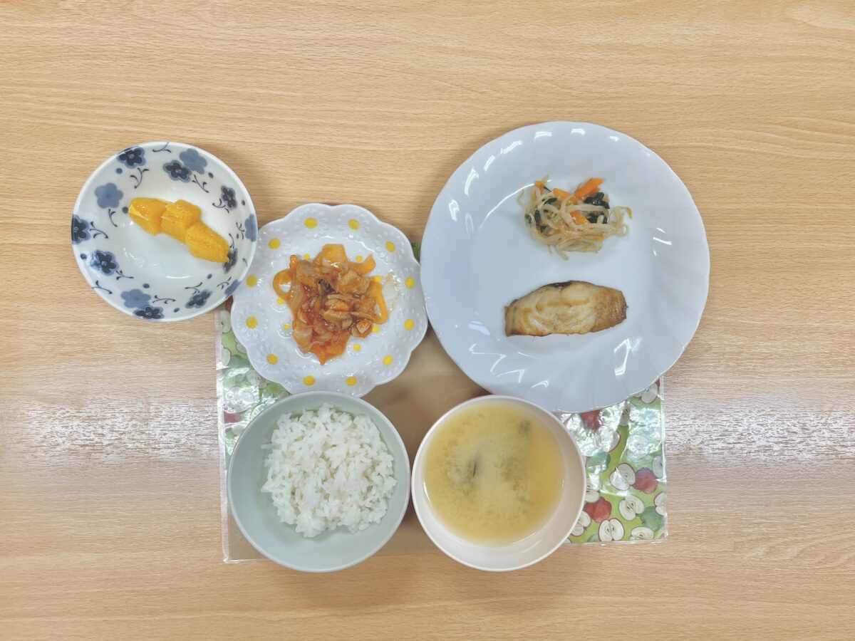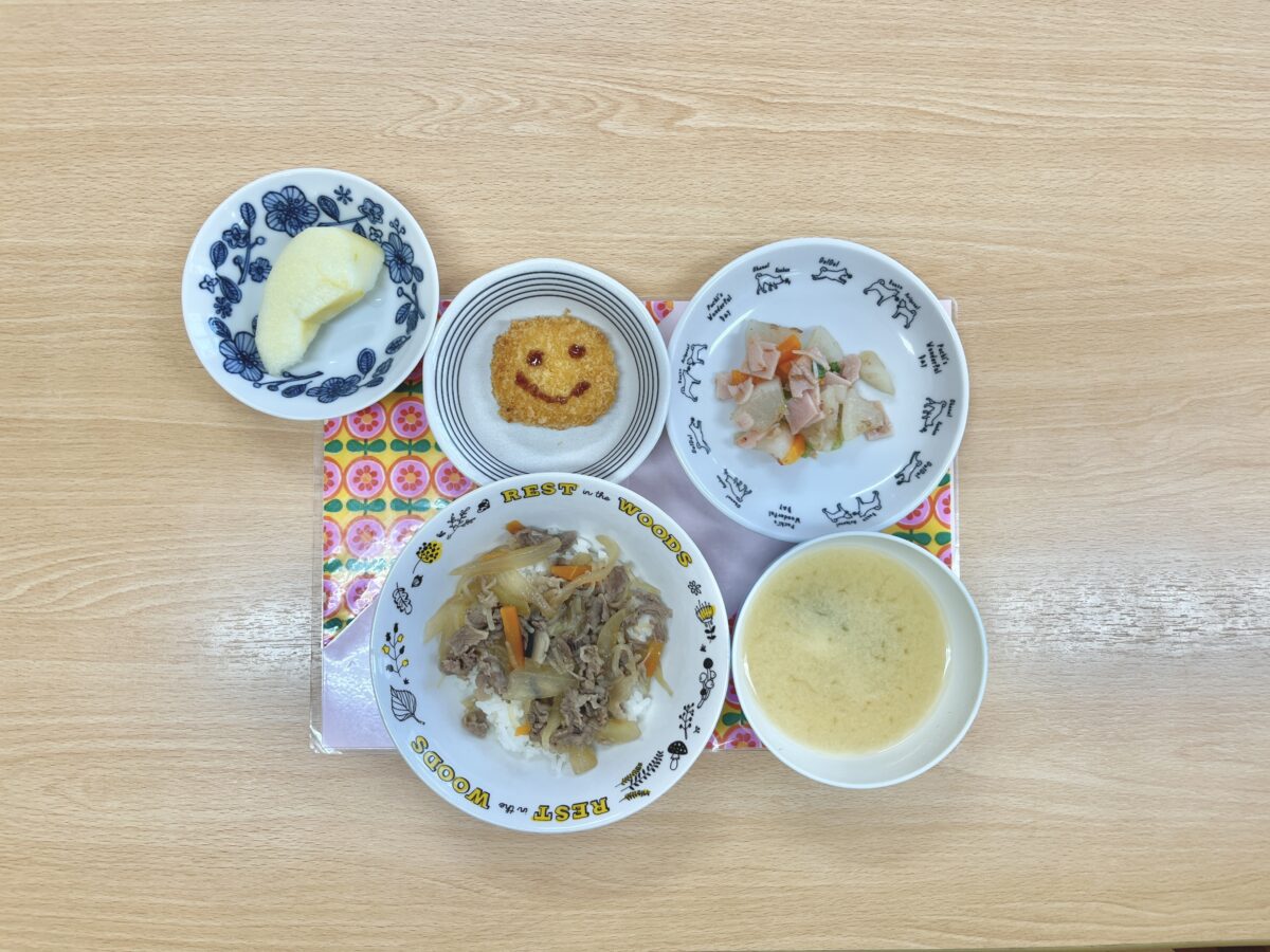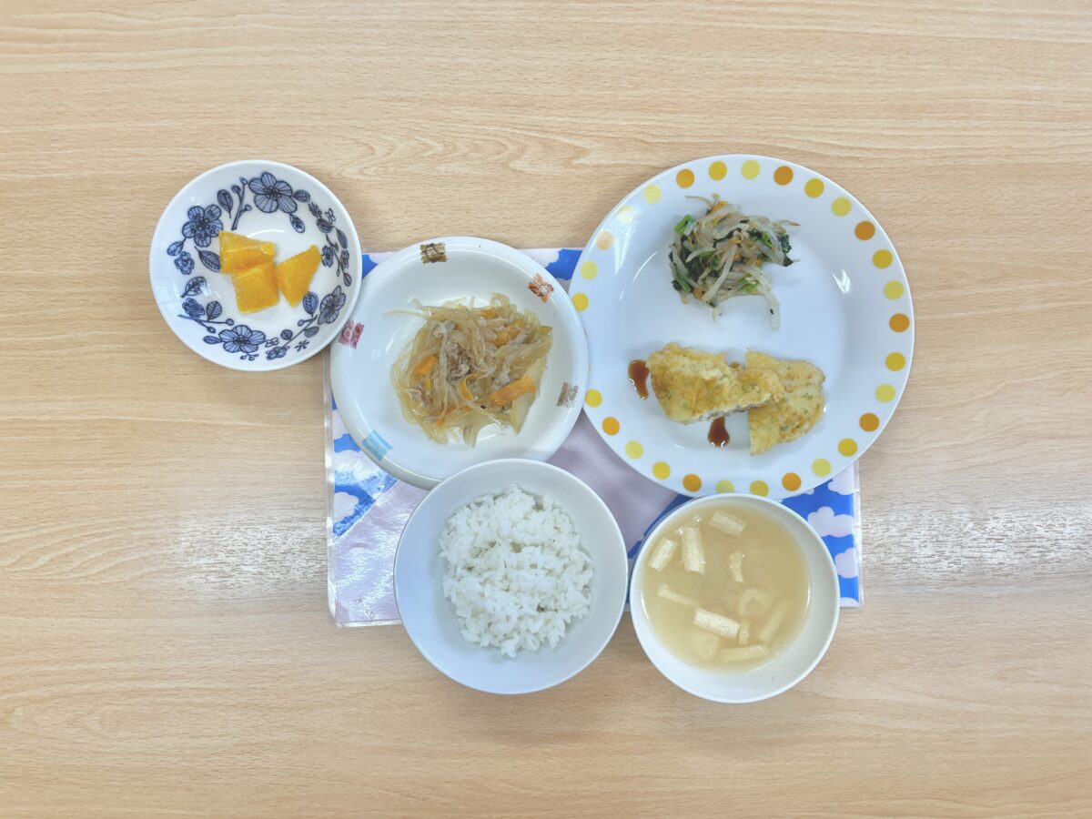 1月20日今日は、柔らかい肉質のチャーシュー丼でした☆じっくりと時間をかけて煮込んだことで味が中まで染みています♬なめこの入ったみそ汁は、すこしとろみがあり、最後まで温かく飲むことが出来ます。1月19日今日は鯖のカレー醤油焼きでした🌟スパイシーな味付けで、ご飯が進みます♬子ども達にも大人気で、たくさんおかわりしてくれました♡1月16日今日はお正月お楽しみ会でした🌞お相撲を頑張った子ども達に、元気が出るおにぎりと、大きなえび天がのったうどんを作りました♪子ども達はみんな喜んで食べてくれました♡1月15日1月14日今日は、鮭の香味焼きでした♬青のりが降りかかった香味焼きは、ごはんが進む味です♡筑前煮は、里芋やごぼうなど様々な具材が入っています♬1月13日今日はハンバーグでした☆濃厚なデミグラスソースとの相性良く、子ども達に大人気でした♡信田煮はやさしい味わいで、柔らかく煮込まれています🎶1月9日今日は牛丼でした☆味がしっかり染みており、ご飯が進みます🎶旬のカブは甘く柔らかいので、サラダにしても美味しいですよ♡1月8日今日は、ほっけの磯辺揚げでした☆身は柔らかく、磯の香りが美味しい一品です♬牛肉のチャプチェは、春雨がたっぷりと入っており、食べやすくなっています。1月7日今日はウィンナーサンドでした☆ふんわりとしたバターロールとウィンナーの相性が抜群です♬タンドリーチキンはカレー風味で、子ども達にも大人気でした♡1月6日今日は、具だくさんでボリュームのある肉じゃがでした。じっくりと煮込んだことで味が良く染みています♫今日のパイナップルは、完熟でとっても甘みのある味わいでした♡1月5日あけましておめでとうございます♪今年も安心安全で美味しい給食を作っていきます。今日は大人気メニューの鶏のから揚げでした☆すき昆布煮にはツナが入っており、うまみが良く出ています♫12月29日今日は肉丼でした☆お肉が柔らかく、ごはんが進む味付けとなっています♪旬のキャベツは甘く柔らかくて、子どもでも食べやすいです💕12月26日今日は秋田の郷土料理、きりたんぽでした♡しっかり煮込んでおり味が染みていて、子ども達にも大人気でした♬12月25日今日は、ミートソーススパゲティでした☆ミートソースは、野菜の旨味たっぷりで子どもたちからも大人気でした♬サラダや、ソテー、スープどれもたくさんおかわりしてくれました♡12月24日今日はクリスマス会でした🎄寒い日にぴったりのクリームシチューで体を温めてくれます♪ジューシーな骨付きチキンに、子ども達は嬉しそうにかぶりついていました♡12月23日今日は、ムキカレイの香味焼きです☆柔らかく食べやすく焼き上がっており、子どもたちからも好評でした♪鶏肉のケチャップ炒めは、酸味を抑えたケチャップ味で食べやすく仕上がってます♡12月22日今日はえのきつくねでした☆えのきが入ることで食感良く、ふんわりと焼き上がっています♫みそ汁には旬のキャベツを使い、甘みがあり美味しいです♡12月19日今日はドライカレー風ピラフでした☆ドライカレーのスパイシーな風味が美味しく、子ども達にも人気のメニューです♪みそ汁には牛乳を加え、まろやかに仕上げました♡12月18日今日は、ペンギンがテーマのランチでした☆黄色いくちばしのついたペンギンのおにぎりは、子どもたちからもかわいい~♡と好評でした♬マカロニサラダには、魚と星の人参をトッピングしました。12月17日今日はハムチーズサンドでした♬ふんわりとした食パンと相性良く、子ども達にも大人気でした☆スープは野菜たっぷりで、体を温めてくれます💕12月16日今日は、鮭フライタルタルでした♬外はサクサク、中はしっとりの鮭フライにタルタルソースがよく合います☆けんちん汁は、サトイモなど具だくさんに仕上げ体の温まる一品です♡12月15日今日は鶏のガリバタ焼きでした♬ガーリックとバターの香ばしい風味が美味しい一品です☆オランダ煮は高野豆腐を一度揚げてから煮込んでいるので、ふんわりととろみがついており食べやすいです♡12月12日今日はハヤシライスでした☆寒い日にあったかいハヤシライスと白菜スープで、体をぽかぽかに温めてくれます♫白菜は旬なので、柔らかく甘みがあり美味しく食べて貰えました☆12月11日今日は、アジのマスタードマヨ焼きでした。まろやかなマスタードマヨソースがアジにたっぷりの乗っており人気のメニューでした♬レバー炒めは、にらが入っておりスタミナみなぎる味付けになっています☆12月10日今日はハンバーグサンドでした☆濃厚なデミグラスソースのハンバーグをふわふわのバターロールでサンドしました♫子ども達にも大人気でした♡12月9日今日は、豚肉の生姜焼きでした☆生姜の風味をしっかりと感じることができ、からだの温まる一品です♫みそ汁には、旬の白菜をたっぷりと使用しました♡12月8日今日は冬の定番、おでんでした☆しっかり煮込んだ大根は味がしみており