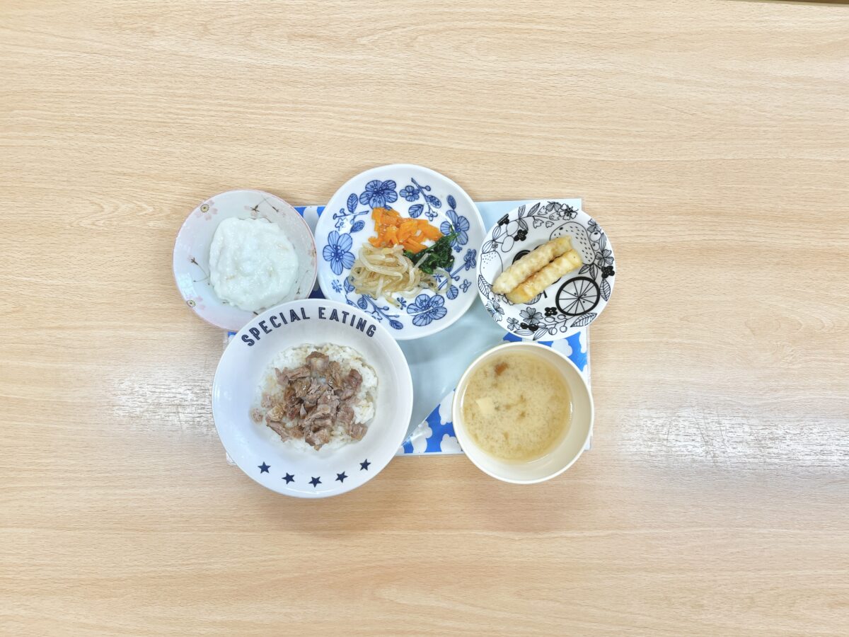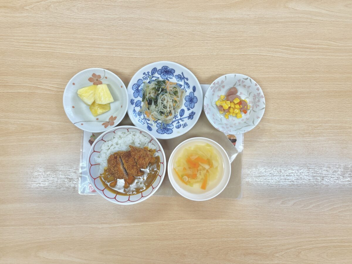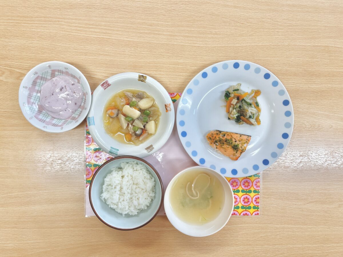 1月20日今日は、柔らかい肉質のチャーシュー丼でした☆じっくりと時間をかけて煮込んだことで味が中まで染みています♬なめこの入ったみそ汁は、すこしとろみがあり、最後まで温かく飲むことが出来ます。1月19日今日は鯖のカレー醤油焼きでした🌟スパイシーな味付けで、ご飯が進みます♬子ども達にも大人気で、たくさんおかわりしてくれました♡1月16日今日はお正月お楽しみ会でした🌞お相撲を頑張った子ども達に、元気が出るおにぎりと、大きなえび天がのったうどんを作りました♪子ども達はみんな喜んで食べてくれました♡1月15日1月14日今日は、鮭の香味焼きでした♬青のりが降りかかった香味焼きは、ごはんが進む味です♡筑前煮は、里芋やごぼうなど様々な具材が入っています♬1月13日今日はハンバーグでした☆濃厚なデミグラスソースとの相性良く、子ども達に大人気でした♡信田煮はやさしい味わいで、柔らかく煮込まれています🎶1月9日今日は牛丼でした☆味がしっかり染みており、ご飯が進みます🎶旬のカブは甘く柔らかいので、サラダにしても美味しいですよ♡1月8日今日は、ほっけの磯辺揚げでした☆身は柔らかく、磯の香りが美味しい一品です♬牛肉のチャプチェは、春雨がたっぷりと入っており、食べやすくなっています。1月7日今日はウィンナーサンドでした☆ふんわりとしたバターロールとウィンナーの相性が抜群です♬タンドリーチキンはカレー風味で、子ども達にも大人気でした♡1月6日今日は、具だくさんでボリュームのある肉じゃがでした。じっくりと煮込んだことで味が良く染みています♫今日のパイナップルは、完熟でとっても甘みのある味わいでした♡1月5日あけましておめでとうございます♪今年も安心安全で美味しい給食を作っていきます。今日は大人気メニューの鶏のから揚げでした☆すき昆布煮にはツナが入っており、うまみが良く出ています♫12月29日今日は肉丼でした☆お肉が柔らかく、ごはんが進む味付けとなっています♪旬のキャベツは甘く柔らかくて、子どもでも食べやすいです💕12月26日今日は秋田の郷土料理、きりたんぽでした♡しっかり煮込んでおり味が染みていて、子ども達にも大人気でした♬12月25日今日は、ミートソーススパゲティでした☆ミートソースは、野菜の旨味たっぷりで子どもたちからも大人気でした♬サラダや、ソテー、スープどれもたくさんおかわりしてくれました♡12月24日今日はクリスマス会でした🎄寒い日にぴったりのクリームシチューで体を温めてくれます♪ジューシーな骨付きチキンに、子ども達は嬉しそうにかぶりついていました♡12月23日今日は、ムキカレイの香味焼きです☆柔らかく食べやすく焼き上がっており、子どもたちからも好評でした♪鶏肉のケチャップ炒めは、酸味を抑えたケチャップ味で食べやすく仕上がってます♡12月22日今日はえのきつくねでした☆えのきが入ることで食感良く、ふんわりと焼き上がっています♫みそ汁には旬のキャベツを使い、甘みがあり美味しいです♡12月19日今日はドライカレー風ピラフでした☆ドライカレーのスパイシーな風味が美味しく、子ども達にも人気のメニューです♪みそ汁には牛乳を加え、まろやかに仕上げました♡12月18日今日は、ペンギンがテーマのランチでした☆黄色いくちばしのついたペンギンのおにぎりは、子どもたちからもかわいい~♡と好評でした♬マカロニサラダには、魚と星の人参をトッピングしました。12月17日今日はハムチーズサンドでした♬ふんわりとした食パンと相性良く、子ども達にも大人気でした☆スープは野菜たっぷりで、体を温めてくれます💕12月16日今日は、鮭フライタルタルでした♬外はサクサク、中はしっとりの鮭フライにタルタルソースがよく合います☆けんちん汁は、サトイモなど具だくさんに仕上げ体の温まる一品です♡12月15日今日は鶏のガリバタ焼きでした♬ガーリックとバターの香ばしい風味が美味しい一品です☆オランダ煮は高野豆腐を一度揚げてから煮込んでいるので、ふんわりととろみがついており食べやすいです♡12月12日今日はハヤシライスでした☆寒い日にあったかいハヤシライスと白菜スープで、体をぽかぽかに温めてくれます♫白菜は旬なので、柔らかく甘みがあり美味しく食べて貰えました☆12月11日今日は、アジのマスタードマヨ焼きでした。まろやかなマスタードマヨソースがアジにたっぷりの乗っており人気のメニューでした♬レバー炒めは、にらが入っておりスタミナみなぎる味付けになっています☆12月10日今日はハンバーグサンドでした☆濃厚なデミグラスソースのハンバーグをふわふわのバターロールでサンドしました♫子ども達にも大人気でした♡12月9日今日は、豚肉の生姜焼きでした☆生姜の風味をしっかりと感じることができ、からだの温まる一品です♫みそ汁には、旬の白菜をたっぷりと使用しました♡12月8日今日は冬の定番、おでんでした☆しっかり煮込んだ大根は味がしみており