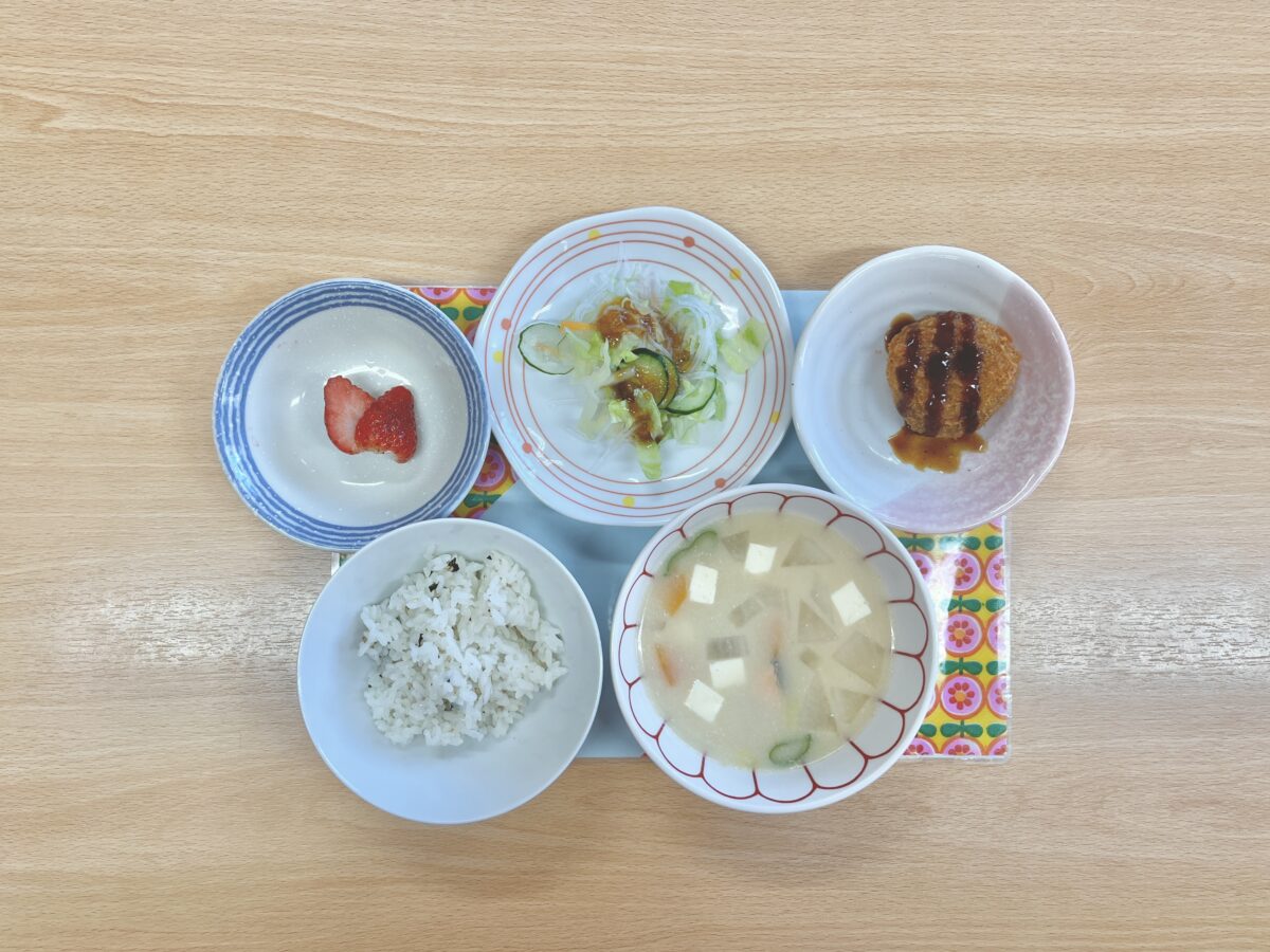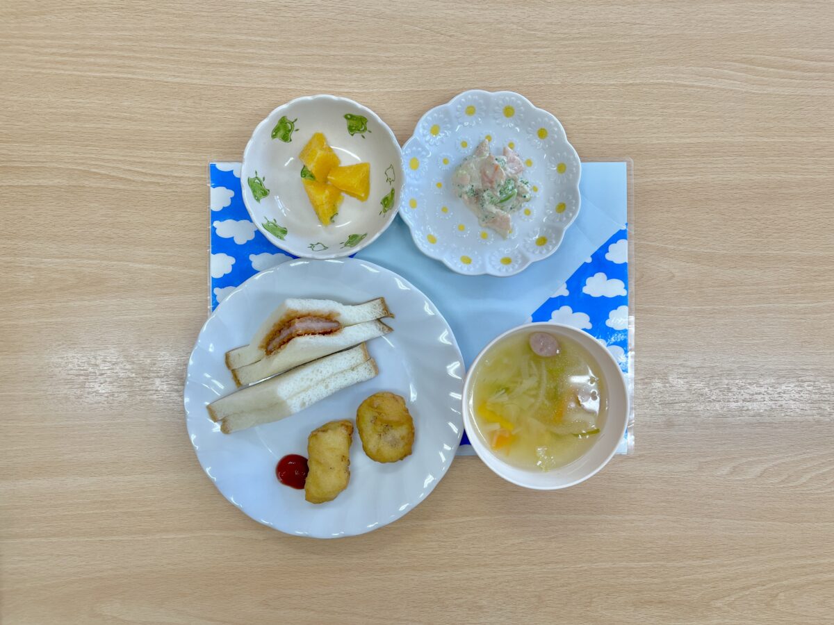 1月27日今日は、ハッシュドビーフでした☆牛肉の旨味たっぷりで、たくさんお代わりしてくれました♡ウインナーソテーには、赤パプリカを入れ入れ彩り良く仕上げました♬1月26日今日は根菜つくねでした♪旬の蓮根とごぼうが入っており、シャキシャキとした食感が楽しいです☆1月23日今日はハムカツサンドでした☆サラダには蓮根が入っており、シャキシャキとした食感が美味しい一品です♪1月22日今日は、体の温まる石狩汁でした。根菜類や、鮭がたっぷりと入っています♪わかめごはんは、程よい塩気で人気メニューです☆1月21日今日は大人気メニューのミートソーススパゲティでした☆サラダには旬のキャベツを使い、甘みがあり柔らかく子ども達にも良く食べられていました♬1月20日今日は、柔らかい肉質のチャーシュー丼でした☆じっくりと時間をかけて煮込んだことで味が中まで染みています♬なめこの入ったみそ汁は、すこしとろみがあり、最後まで温かく飲むことが出来ます。1月19日今日は鯖のカレー醤油焼きでした🌟スパイシーな味付けで、ご飯が進みます♬子ども達にも大人気で、たくさんおかわりしてくれました♡1月16日今日はお正月お楽しみ会でした🌞お相撲を頑張った子ども達に、元気が出るおにぎりと、大きなえび天がのったうどんを作りました♪子ども達はみんな喜んで食べてくれました♡1月15日今日は、力みなぎるカツカレーです🔥サクサクのヒレカツがたっぷりと乗っており、ボリューム満点です♬1月14日今日は、鮭の香味焼きでした♬青のりが降りかかった香味焼きは、ごはんが進む味です♡筑前煮は、里芋やごぼうなど様々な具材が入っています♬1月13日今日はハンバーグでした☆濃厚なデミグラスソースとの相性良く、子ども達に大人気でした♡信田煮はやさしい味わいで、柔らかく煮込まれています🎶1月9日今日は牛丼でした☆味がしっかり染みており、ご飯が進みます🎶旬のカブは甘く柔らかいので、サラダにしても美味しいですよ♡1月8日今日は、ほっけの磯辺揚げでした☆身は柔らかく、磯の香りが美味しい一品です♬牛肉のチャプチェは、春雨がたっぷりと入っており、食べやすくなっています。1月7日今日はウィンナーサンドでした☆ふんわりとしたバターロールとウィンナーの相性が抜群です♬タンドリーチキンはカレー風味で、子ども達にも大人気でした♡1月6日今日は、具だくさんでボリュームのある肉じゃがでした。じっくりと煮込んだことで味が良く染みています♫今日のパイナップルは、完熟でとっても甘みのある味わいでした♡1月5日あけましておめでとうございます♪今年も安心安全で美味しい給食を作っていきます。今日は大人気メニューの鶏のから揚げでした☆すき昆布煮にはツナが入っており、うまみが良く出ています♫12月29日今日は肉丼でした☆お肉が柔らかく、ごはんが進む味付けとなっています♪旬のキャベツは甘く柔らかくて、子どもでも食べやすいです💕12月26日今日は秋田の郷土料理、きりたんぽでした♡しっかり煮込んでおり味が染みていて、子ども達にも大人気でした♬12月25日今日は、ミートソーススパゲティでした☆ミートソースは、野菜の旨味たっぷりで子どもたちからも大人気でした♬サラダや、ソテー、スープどれもたくさんおかわりしてくれました♡12月24日今日はクリスマス会でした🎄寒い日にぴったりのクリームシチューで体を温めてくれます♪ジューシーな骨付きチキンに、子ども達は嬉しそうにかぶりついていました♡12月23日今日は、ムキカレイの香味焼きです☆柔らかく食べやすく焼き上がっており、子どもたちからも好評でした♪鶏肉のケチャップ炒めは、酸味を抑えたケチャップ味で食べやすく仕上がってます♡12月22日今日はえのきつくねでした☆えのきが入ることで食感良く、ふんわりと焼き上がっています♫みそ汁には旬のキャベツを使い、甘みがあり美味しいです♡12月19日今日はドライカレー風ピラフでした☆ドライカレーのスパイシーな風味が美味しく、子ども達にも人気のメニューです♪みそ汁には牛乳を加え、まろやかに仕上げました♡12月18日今日は、ペンギンがテーマのランチでした☆黄色いくちばしのついたペンギンのおにぎりは、子どもたちからもかわいい~♡と好評でした♬マカロニサラダには、魚と星の人参をトッピングしました。12月17日今日はハムチーズサンドでした♬ふんわりとした食パンと相性良く、子ども達にも大人気でした☆スープは野菜たっぷりで、体を温めてくれます💕12月16日今日は、鮭フライタルタルでした♬外はサクサク、中はしっとりの鮭フライにタルタルソースがよく合います☆けんちん汁は、サトイモなど具だくさんに仕上げ体の温まる一品です♡12月15日今日は鶏のガリバタ焼きでした♬ガーリックとバターの香ばしい風味が美味しい一品です☆オランダ煮は高野豆腐を一度揚げてから煮込んでいるので、ふんわりととろみがついており食べやすいです♡12月1